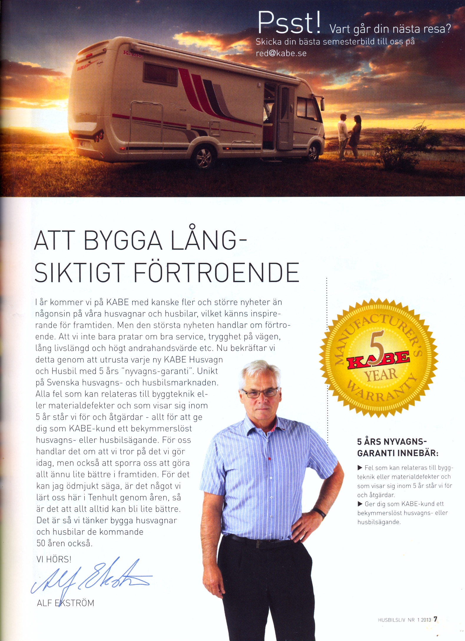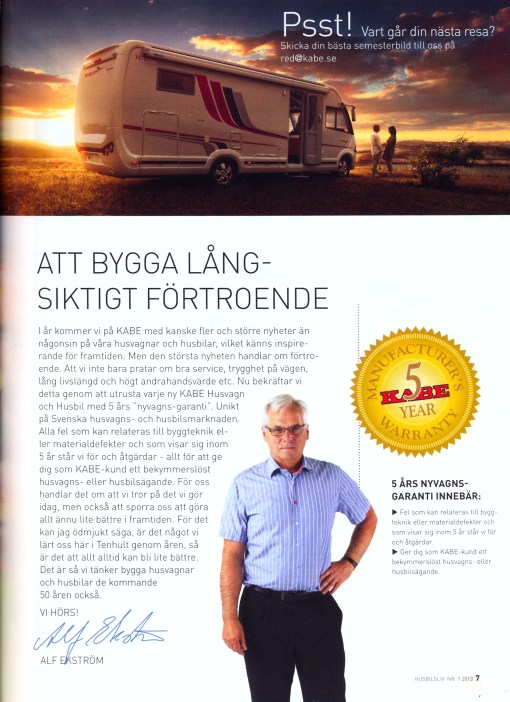 För oss med husbilar var detta ett jättestort steg framåt för hela branschen. Fler kommer att tvingas följa efter för att skapa trygghet hos köparna. Heja Kabe, bra jobbat!