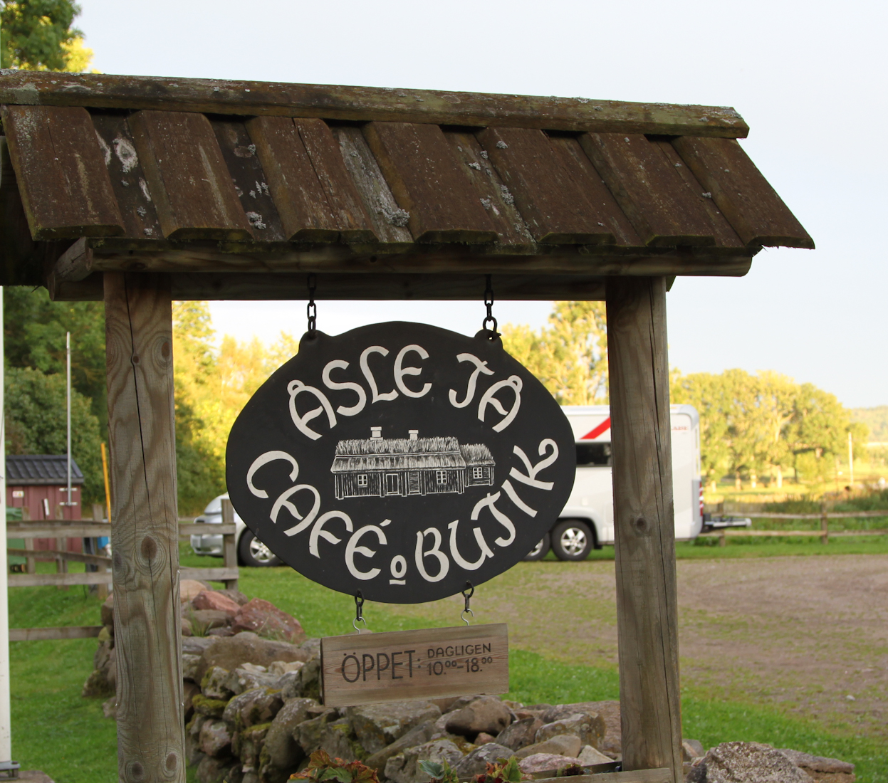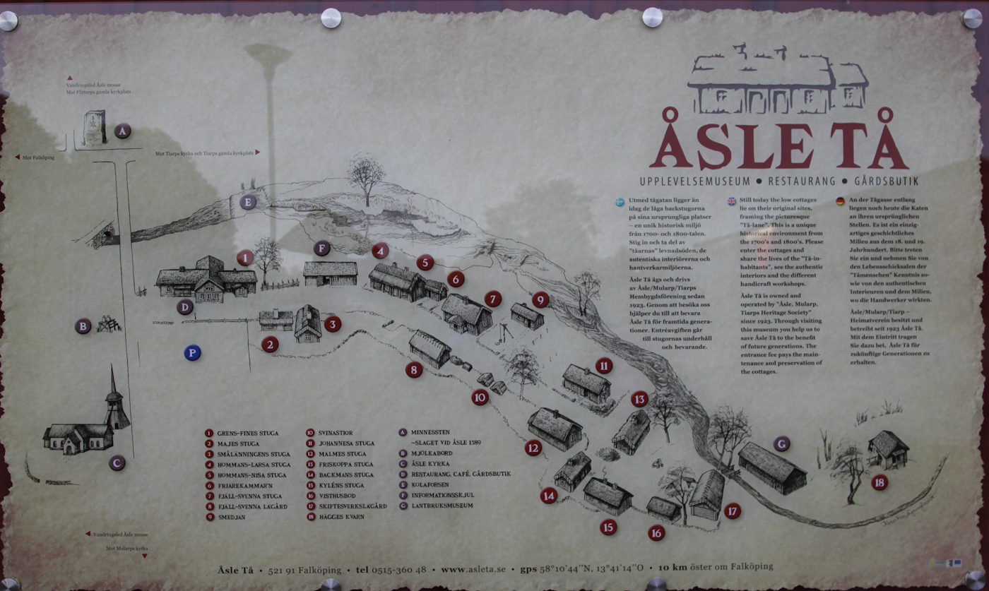 Egentligen borde alla se sin historia, vi har inte alltid suttit i fina hem med fina möbler. Våra föregångare har fått kämpa, lida och bära umbäranden som är svåra att förstå. Nu har vi bott här två nätter, på en riktigt bra ställplats, för endast 75:- per natt inkl. el, fritt wireless wifi och bra nästan nybyggda toaletter. Sverige är fantastiskt. Heder åt en Hembygdsförening som gjort allt och lite till. Heja Åsle Tå. En av våra goda vänner, som bor i just Falköping erkänner för oss, ”Jag skäms, jag har inte varit här sedan skolresan för fyrtio år sedan”.