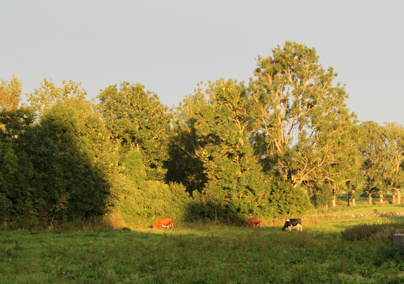 En vacker grön äng med betande kossor och en blå himmel strax före solnedgången är också njutbart.