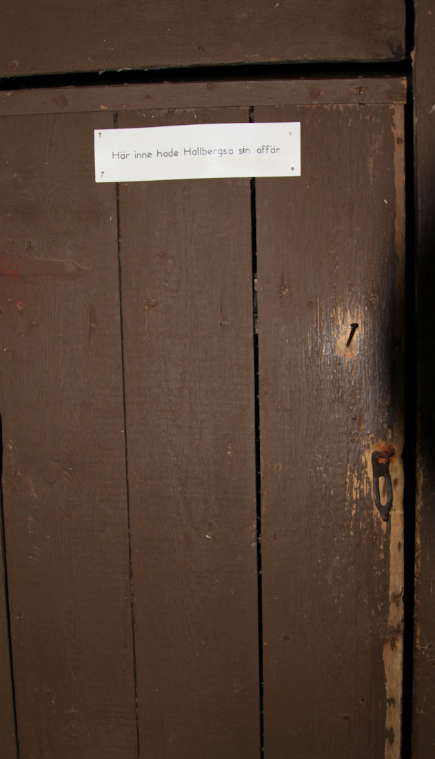 Här hade ”Hallbergsa” diversehandel och sålde kaffe, socker, sill och snus. Snus var en stor artikel då många hade tre prillor inlagda samtidigt.