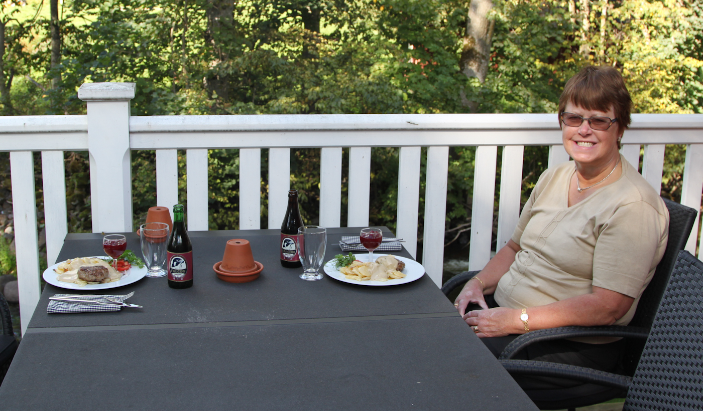Vi avslutade med en riktigt god ”Tjuvjägarbiff med potatisgratäng” på altan till restaurangen.