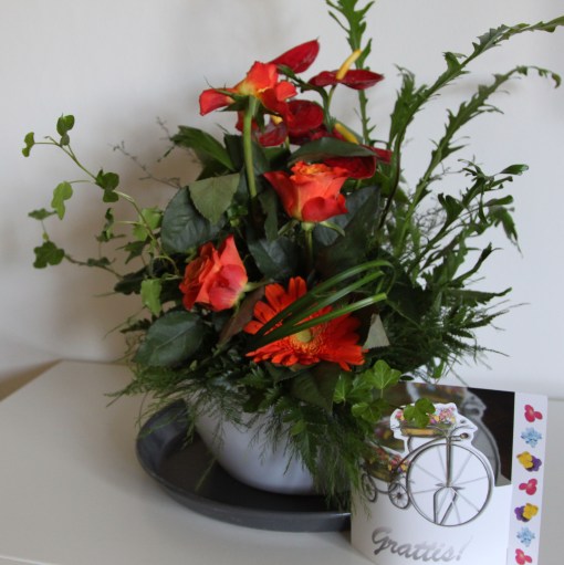 Tur att vi inte köpte en ”Mamma Barn Bukett”. Det hade Candra redan fått tre stycken. Allt är vitt hos Candra så vad kunnde passa bättre, än en vit kruka fylld med blommor och växter.