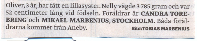 sc003853e8Vi firade jul- & nyårshelgen tillsammans med dessa båda underbara barnbarn, i tolv hela dagar. Nelly, 3 månader, bara ler, skrattar, är tyst och ger knappast ett ljud ifrån sig. Storebror Oliver däremot, är kanske i trotsåldern och då kan det ta ganska lång tid att bara gå ut. ”Jag vill inte ha dom vantarna, jag vill inte ha den mössan, jag vill inte ha dom stövlarna”, kan det låta. Jag tycker att pappa Mikaels bror Fotograf Tobias, verkligen har lyckats fånga det perfekta ögonblicket.