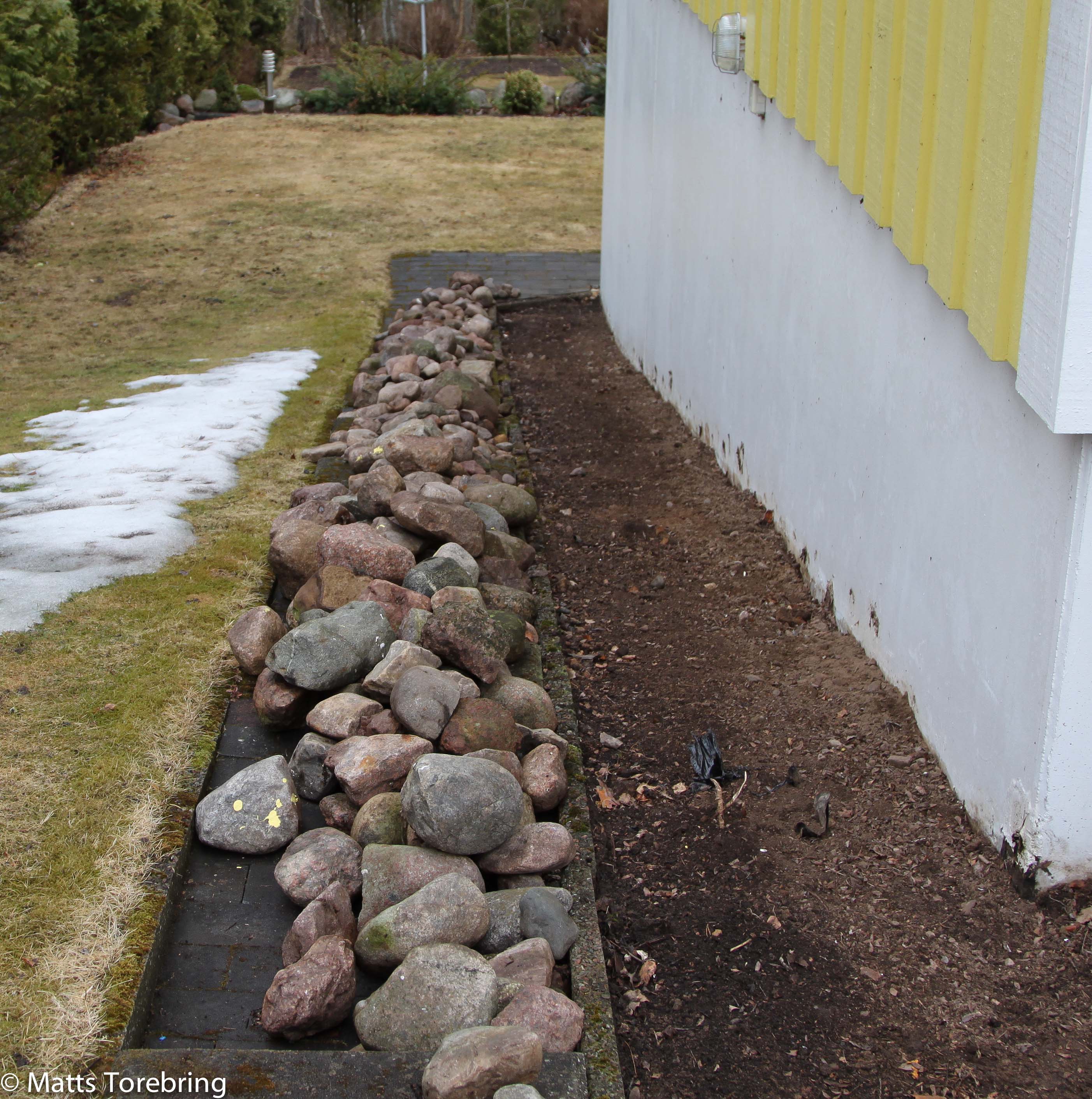 Igår fredag hade vi styrelsemöte på jobbet. Vår dotter, advokat Candra Torebring, Stockholm, sitter med i styrelsen i vårt familjeföretag och kom hem med son och dotter medan maken Mikael är på affärsresa i USA. Då passar det inte alls bra att fara ut med bobilen. Det fick bli en hemma lördag helt enkelt. Nu gör jag det ena arbetet efter det andra, bara för att kunna vara ute och resa ännu mera med bobilen. För tolv- tretton år sedan körde jag hem tonvis med småsten som jag lade närmast väggen utmed huset. Stenen gick jag och plockade i olika grusgropar.