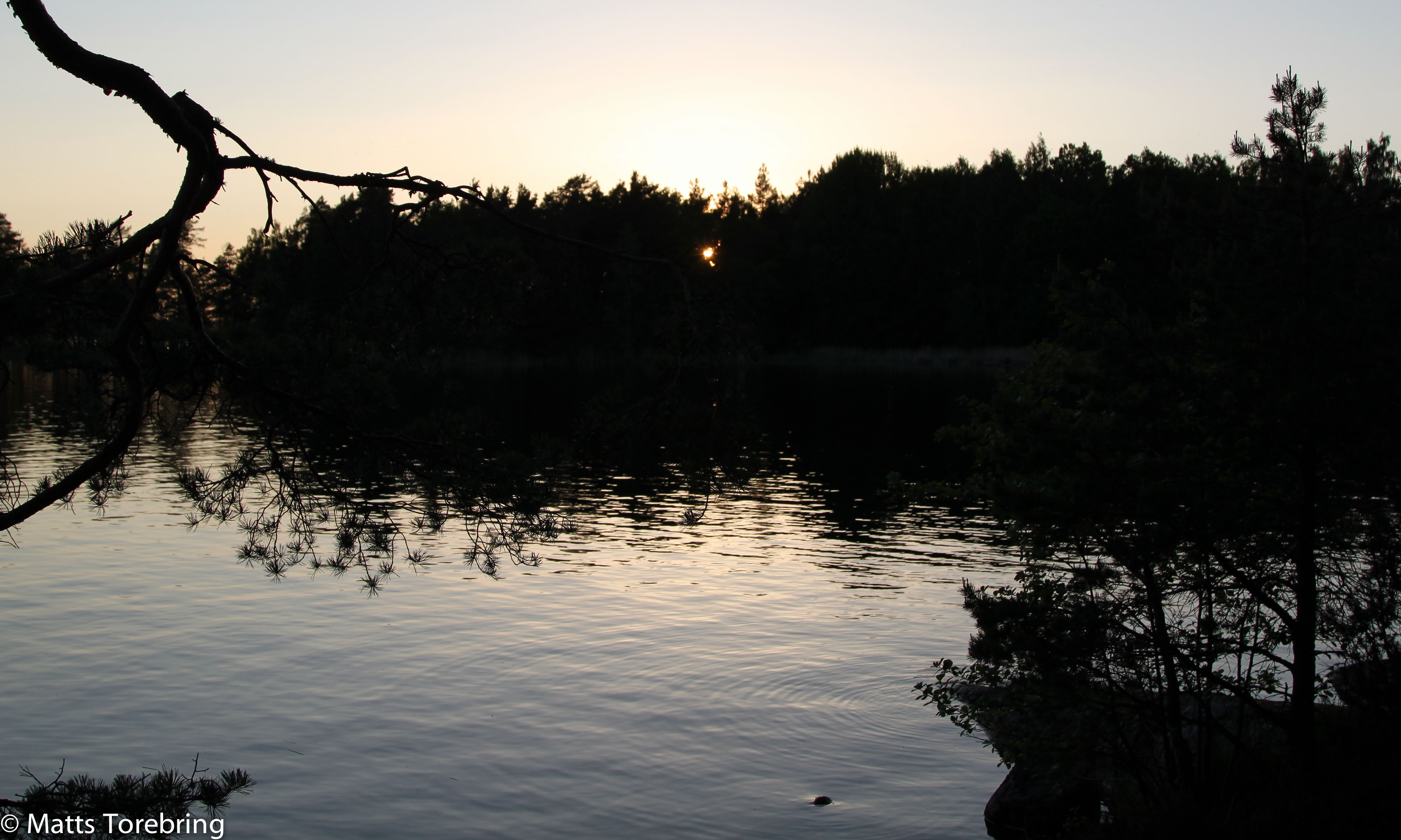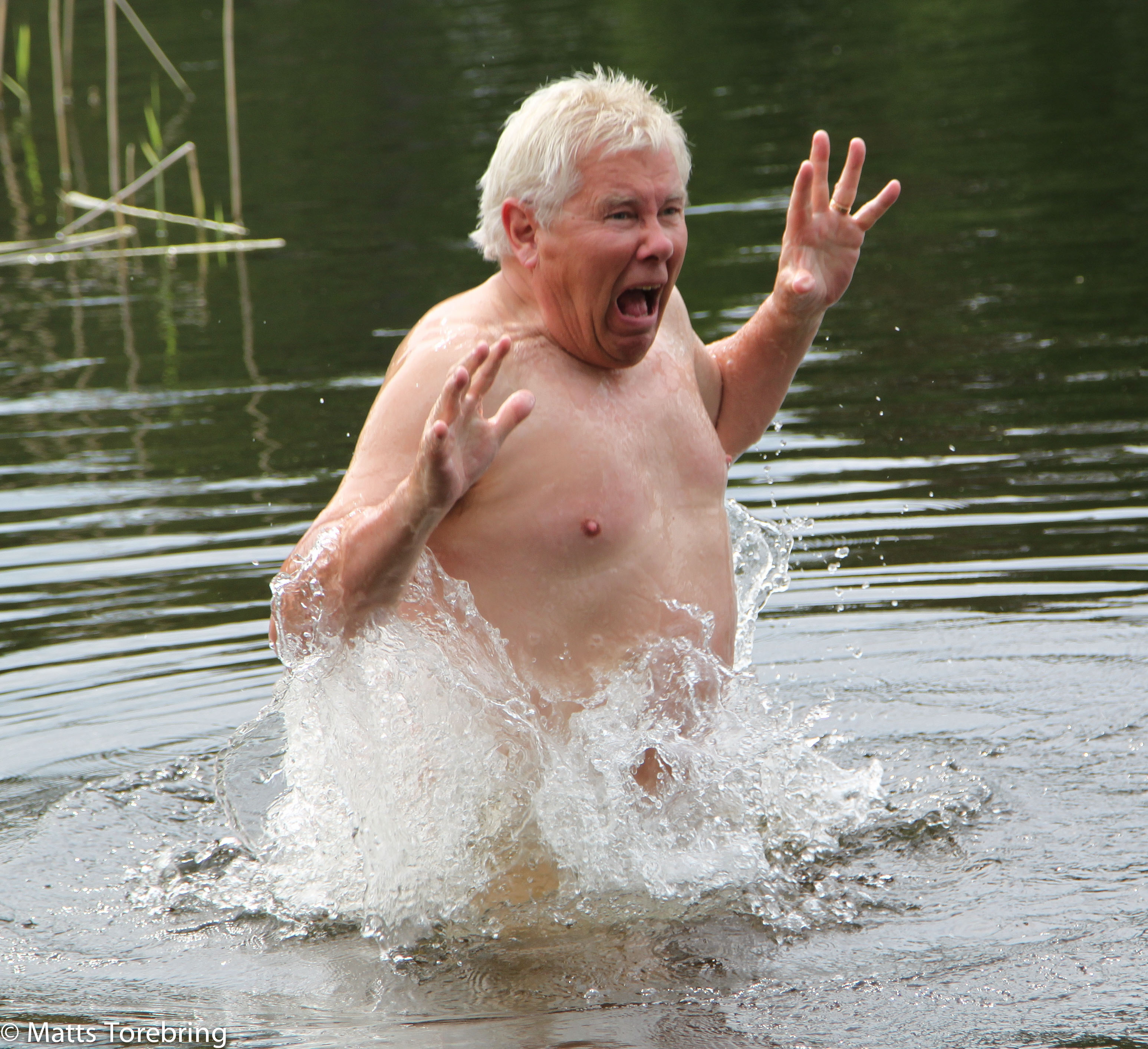 Vid berghällen på andra sidan viken badade jag och vi satt och tittade på när Carl-Johan eldade ris. De påstår att de inte såg mitt premiärdopp i sjön Sommen.