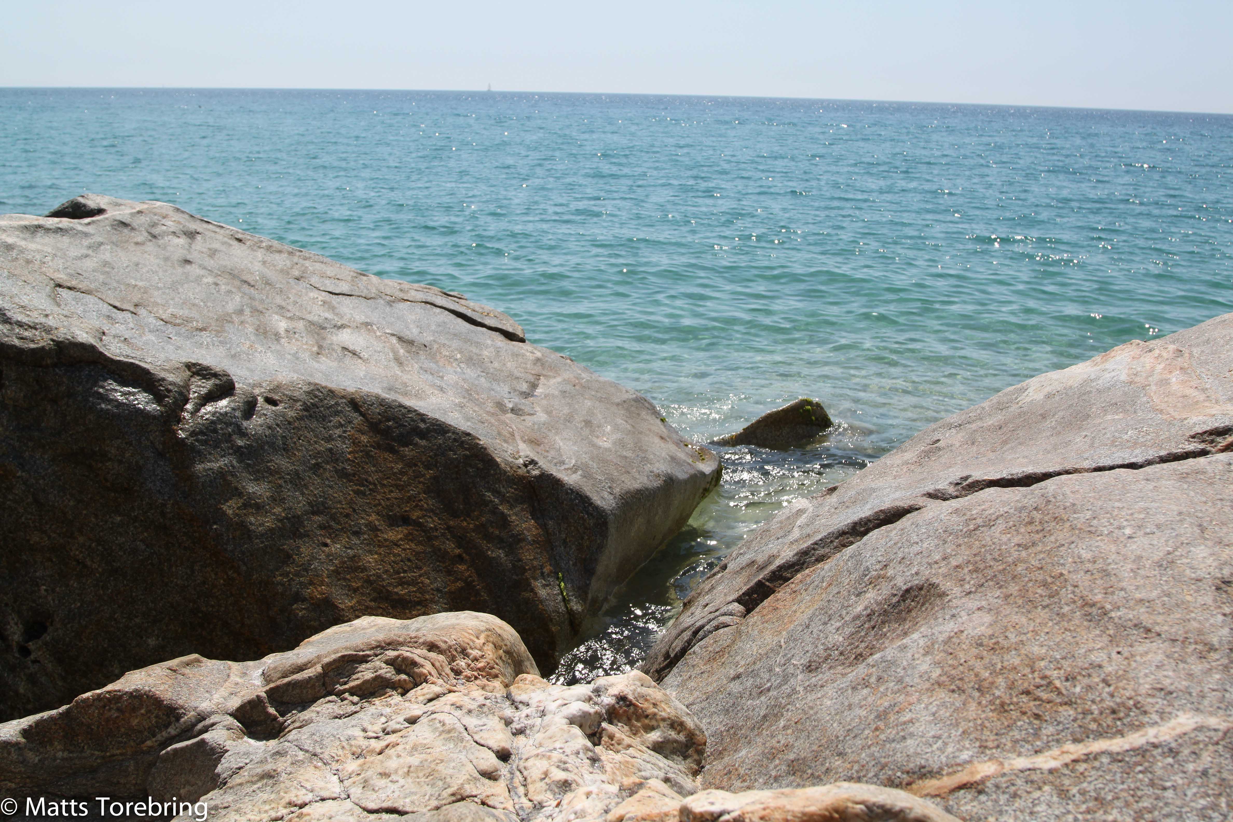 Stranden såg väldigt skön ut med kombinationen sand och klippor. Dessutom inte alltför stor, så det blir invasion och man nästan trampar på sin granne. Ni ser ut ha hyfsat gått om plats och kan njuta av både natur och härliga bad. Om det nu inte var så varm som du tänkt. Hur många grader var det då i vattnet?