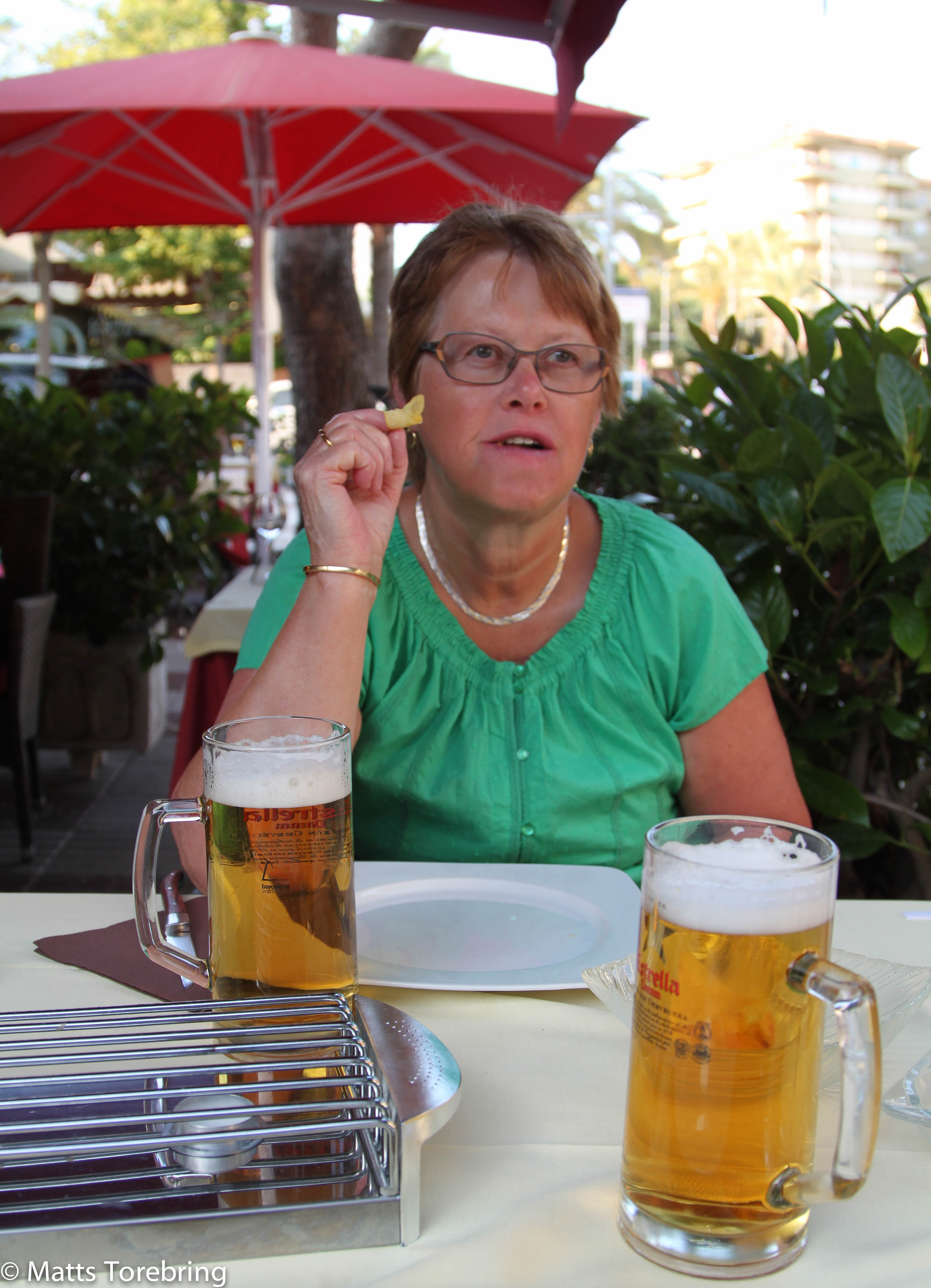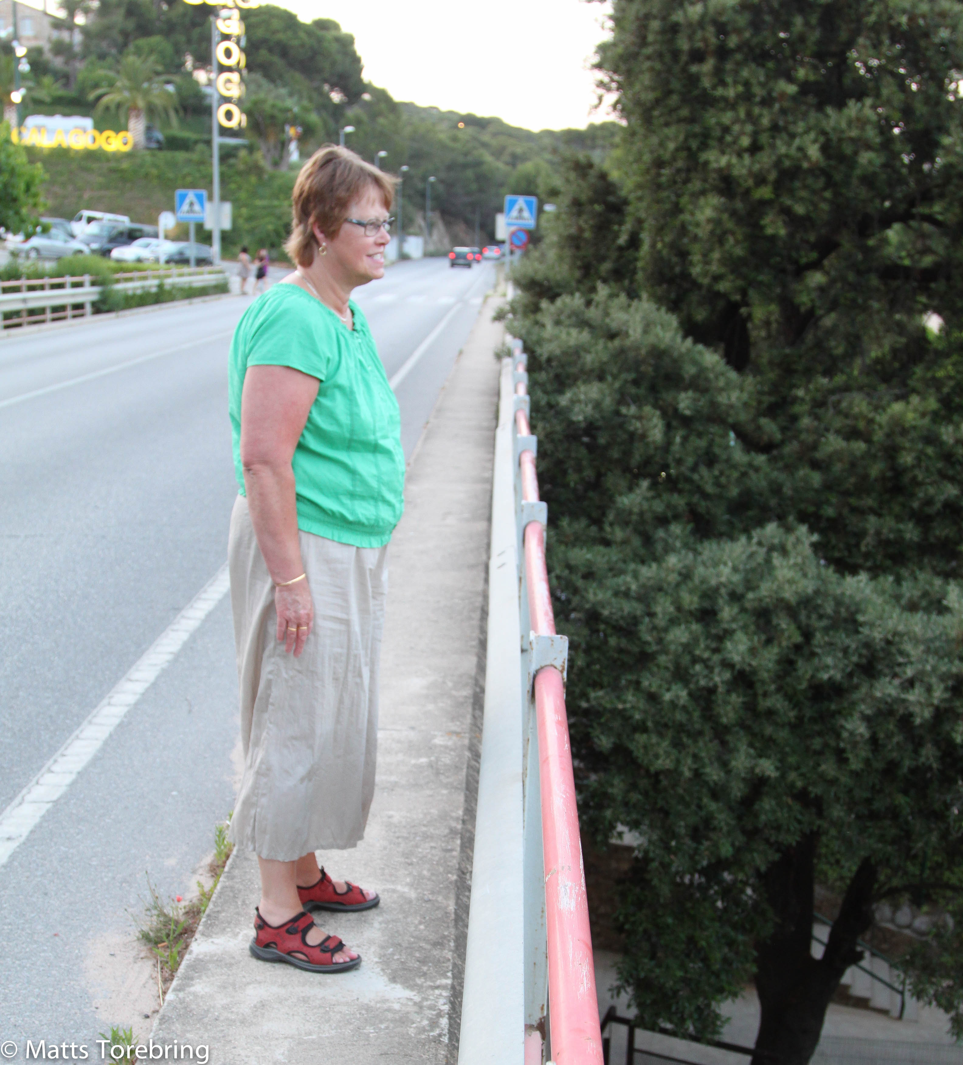 För att göra något extra gick vi in till city, Platja d´Aro, för att äta en bit mat. Jag har skrivit om denna bro innan, både Birgitta och jag tycker den är läskig. Man blir nästan lite snudd på yr i bollen, bara för att räcket är så lågt och djupet ned till gångvägen är så stort.