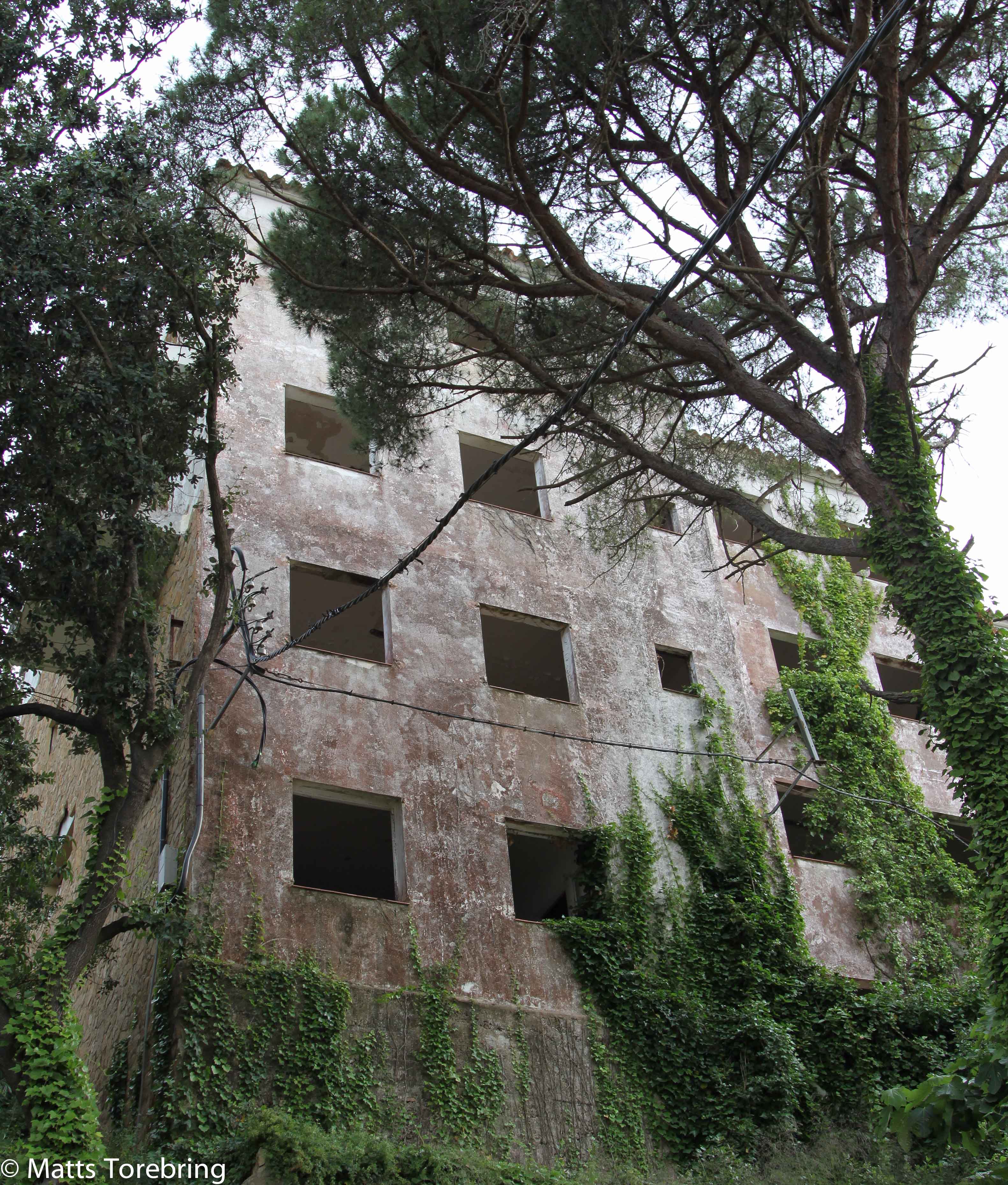 Jag har lagt ut mycket bilder från en otroligt vacker natur runt Camping Cala Gogo. Gå ravinen upp på den södra delen, sa våra vänner. Där möter oss detta skräckinjagande hus. Skulle tro att det aldrig blivit färdigbyggt. Strax bakom detta hus ligger ett hus till av samma typ, som jag visat när vi är på väg in till stan.