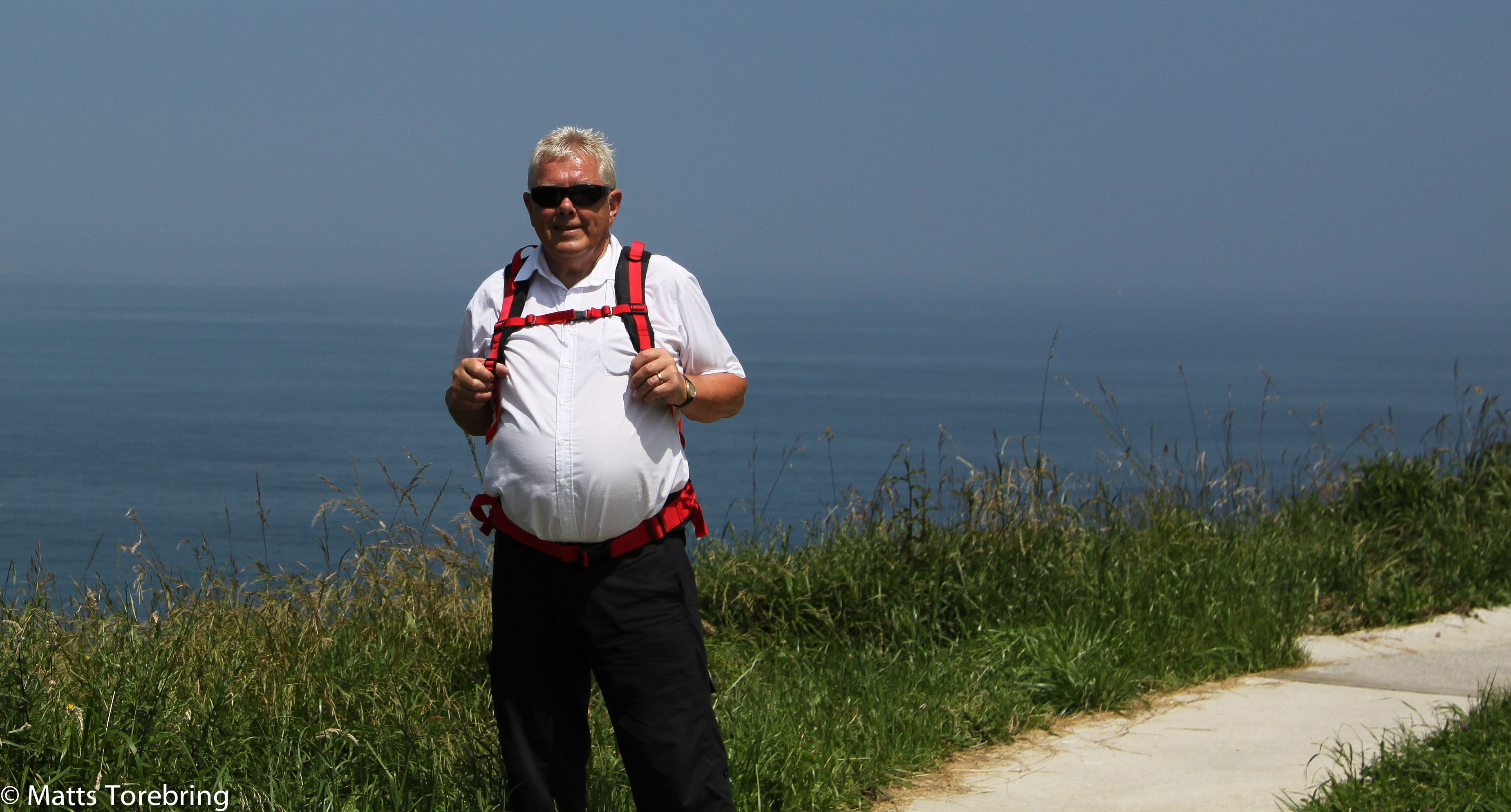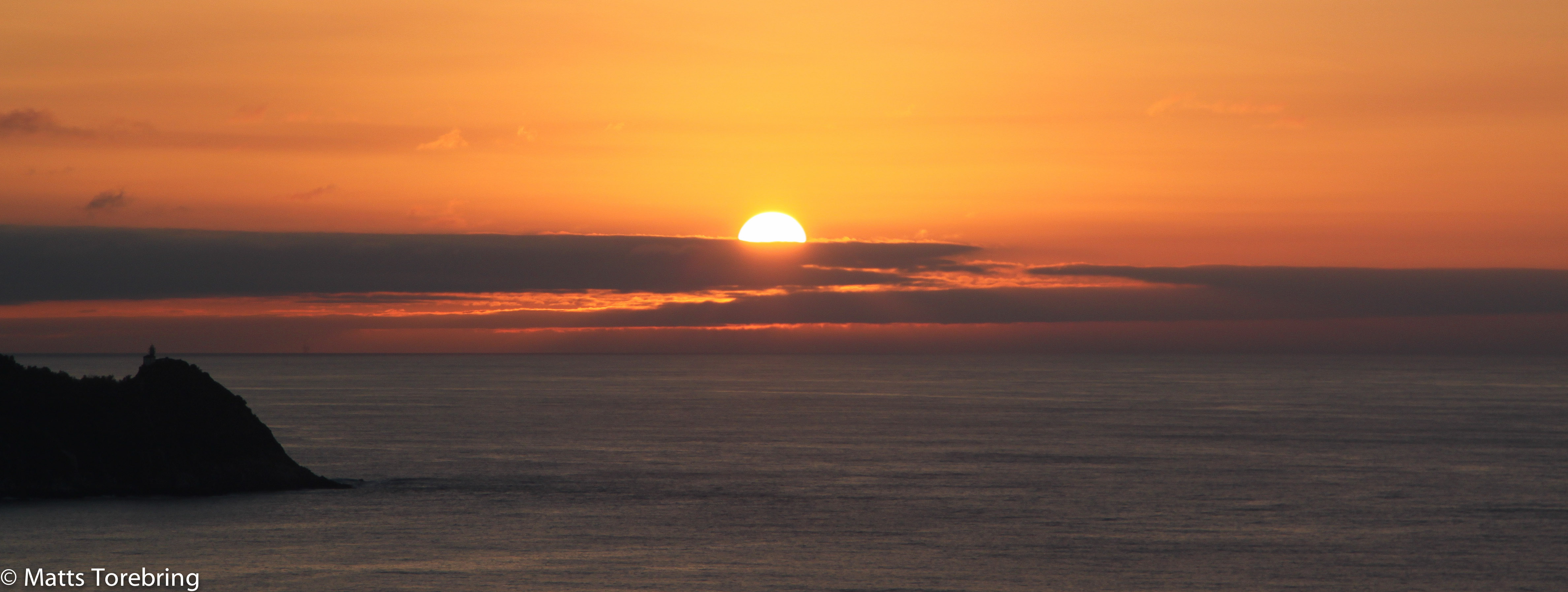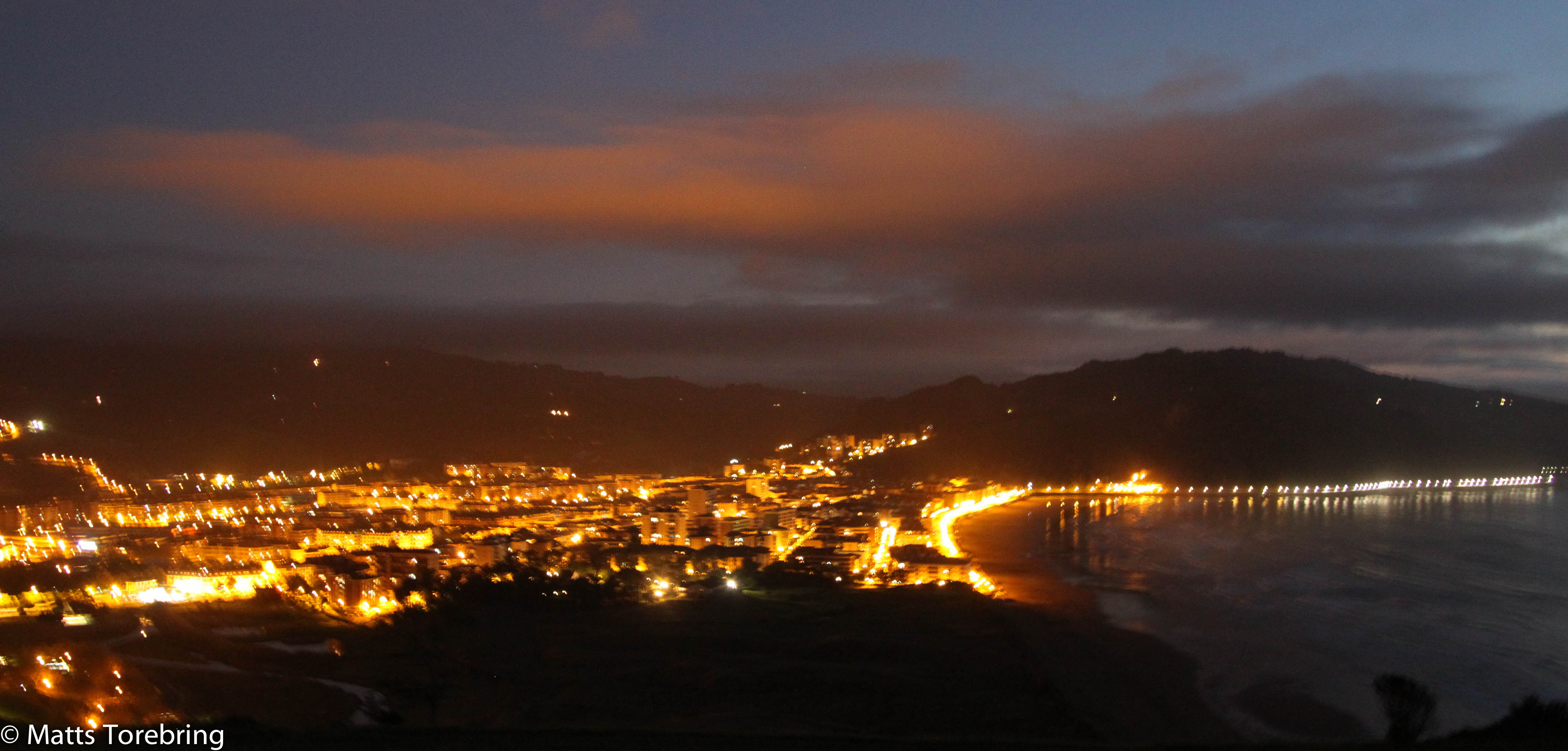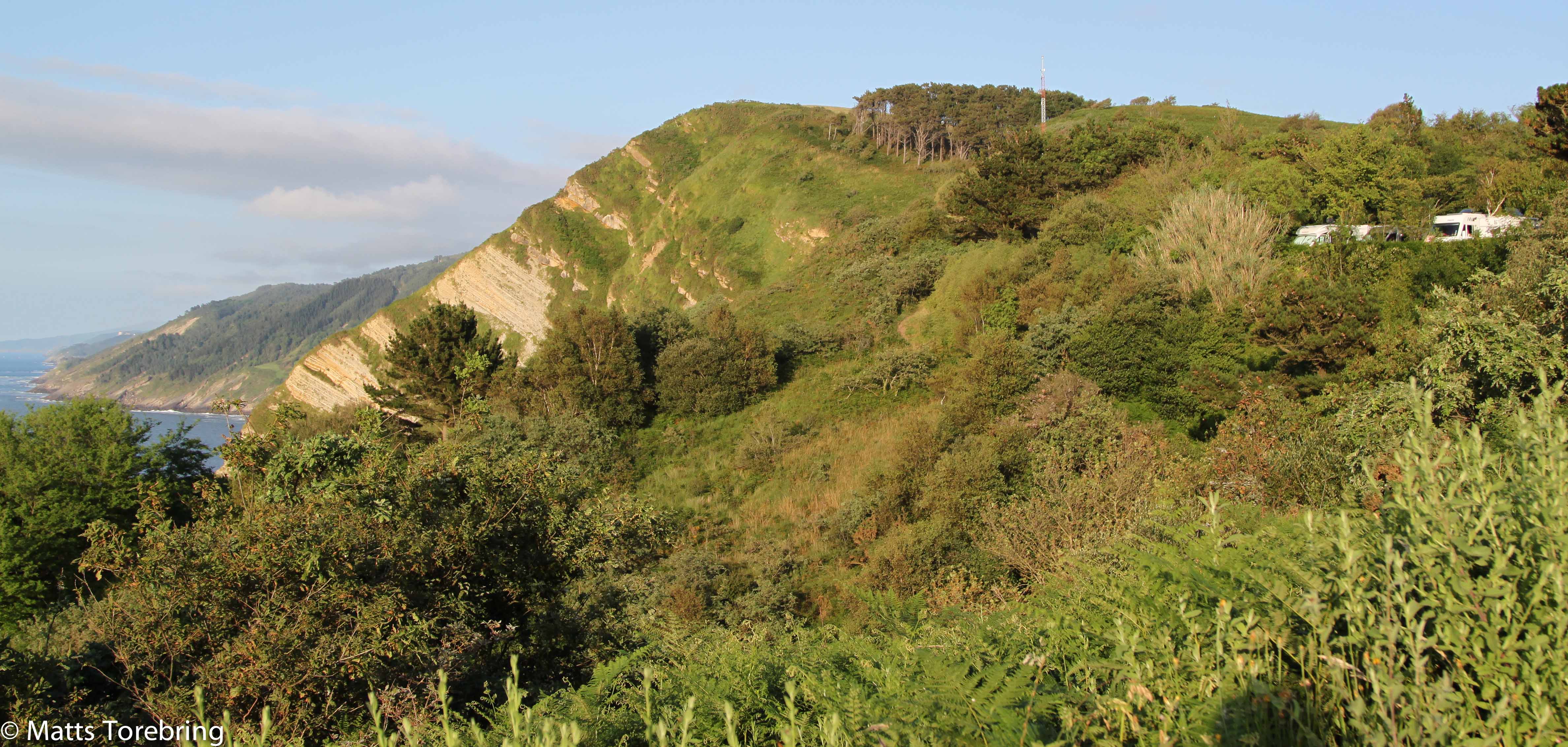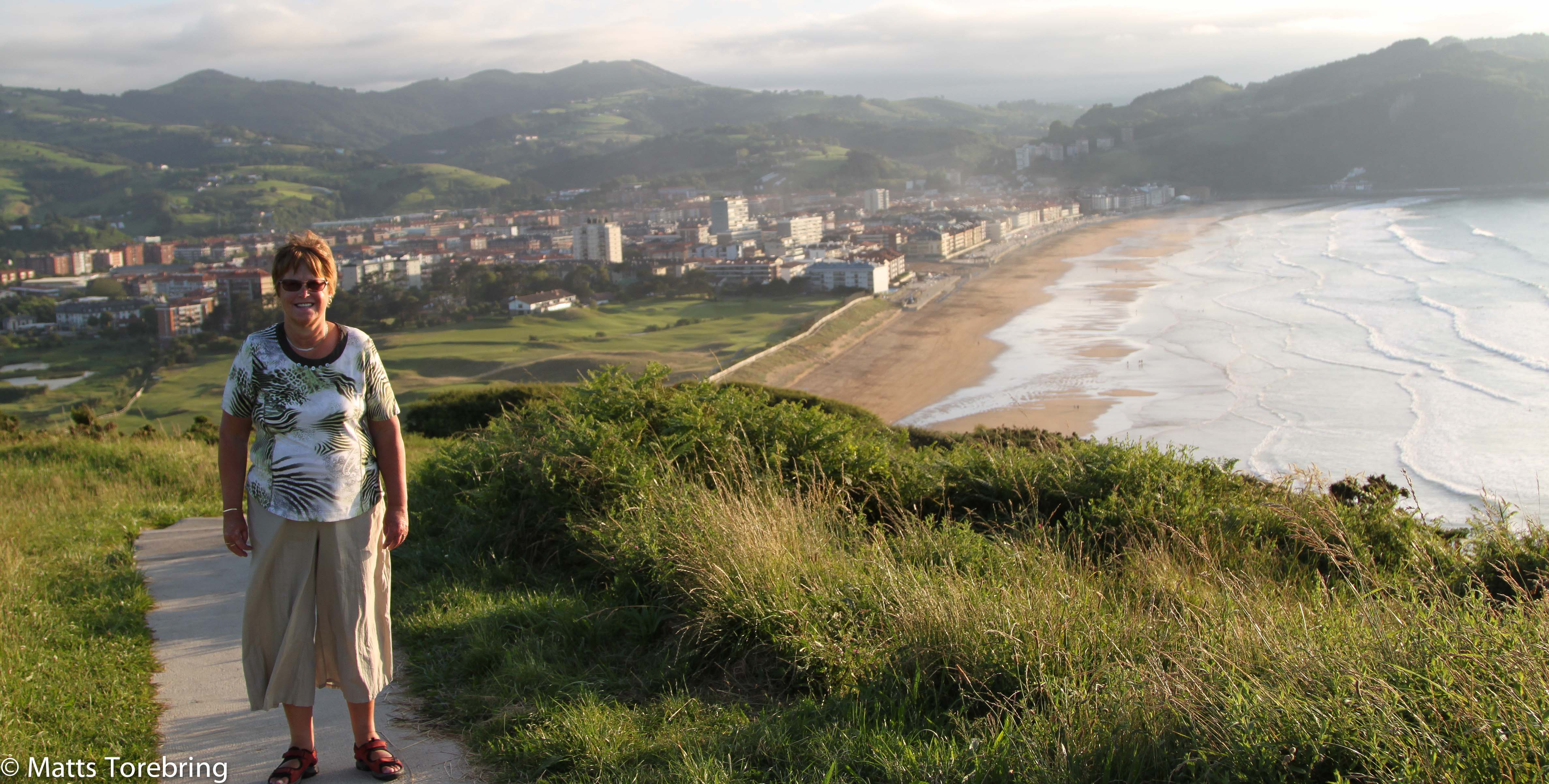 För mig som jobbar hårt med motion i skogen hemma var det inget särskilt att ta sig upp och ned i branten. Värre är det för Birgitta, men hor ger inte upp i första taget hon heller. När man väl kommer upp ett stycke i branten fläktar det på ganska bra. Jag hoppas att få fortsätta vår resa i södra Frankrike och vidare runt hela Biscya till ett annat år. Då skall vi ta buss eller Taxi in till San Sebastian.Vi har inte hittat någon Camping i San Sebastian. Nu har jag sett och beundrat solnedgången, nästa blir att se tidvattnet. Kram från oss.