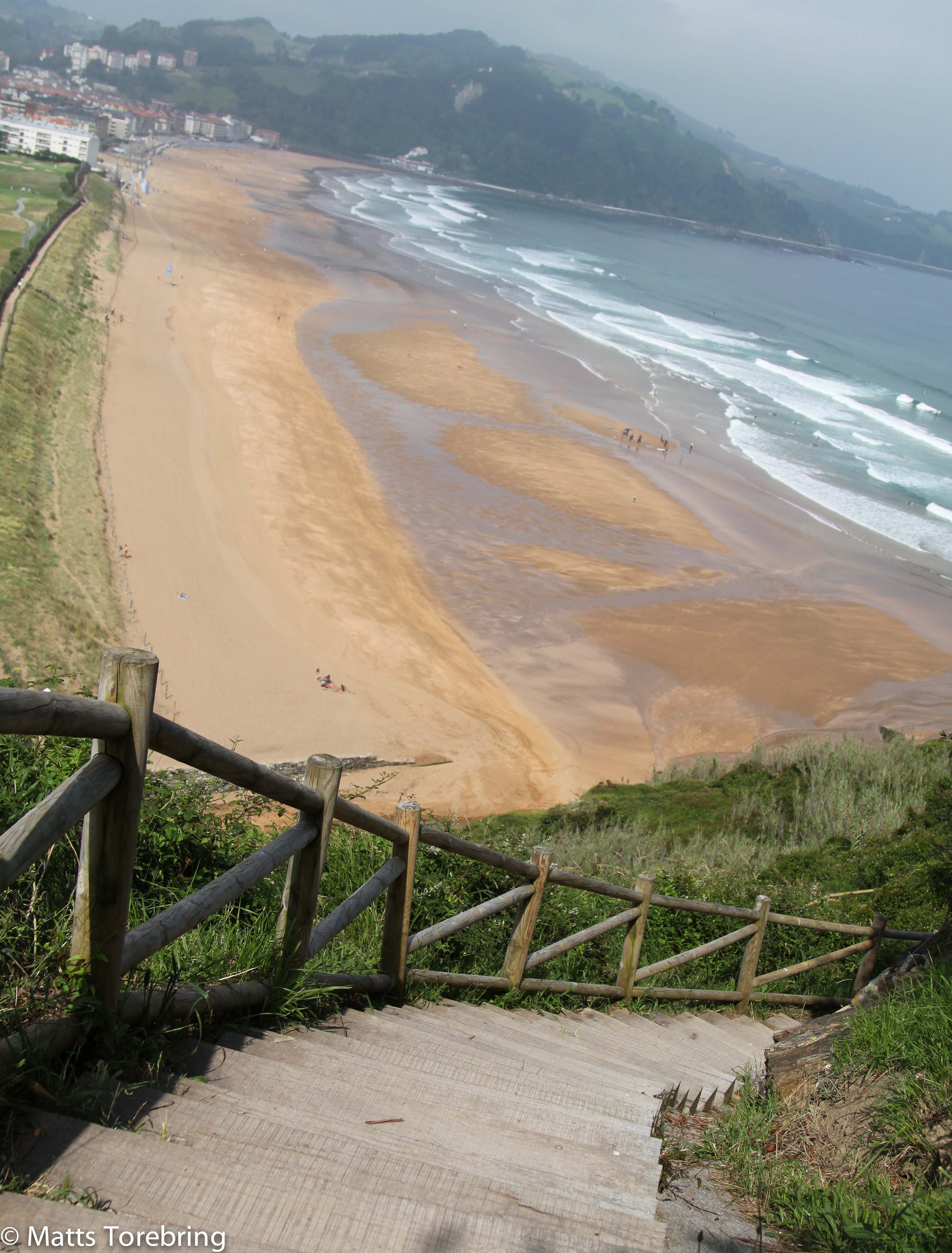 Måste säga att det var en prestation att ta sig både upp och ner för alla de där trapporna. Det frestar på knän och rygg och i all synnerhet om man har en ryggsäck fylld med mat på ryggen också. Men ni hade en magnifik utsikt så det var nog värt besväret att se det både uppifrån och nerifrån. Den här staden ligger som vi förstår en liten bit från San Sebastian, men beachen ser lika imponerande ut. Vågorna och tidvattnet är något alldeles speciellt i Biscyabukten. När man är i närheten av en hamn märker man det verkligen, då står ju båtarna på land. Otroligt. Ha det så bra! Kram 3 M
