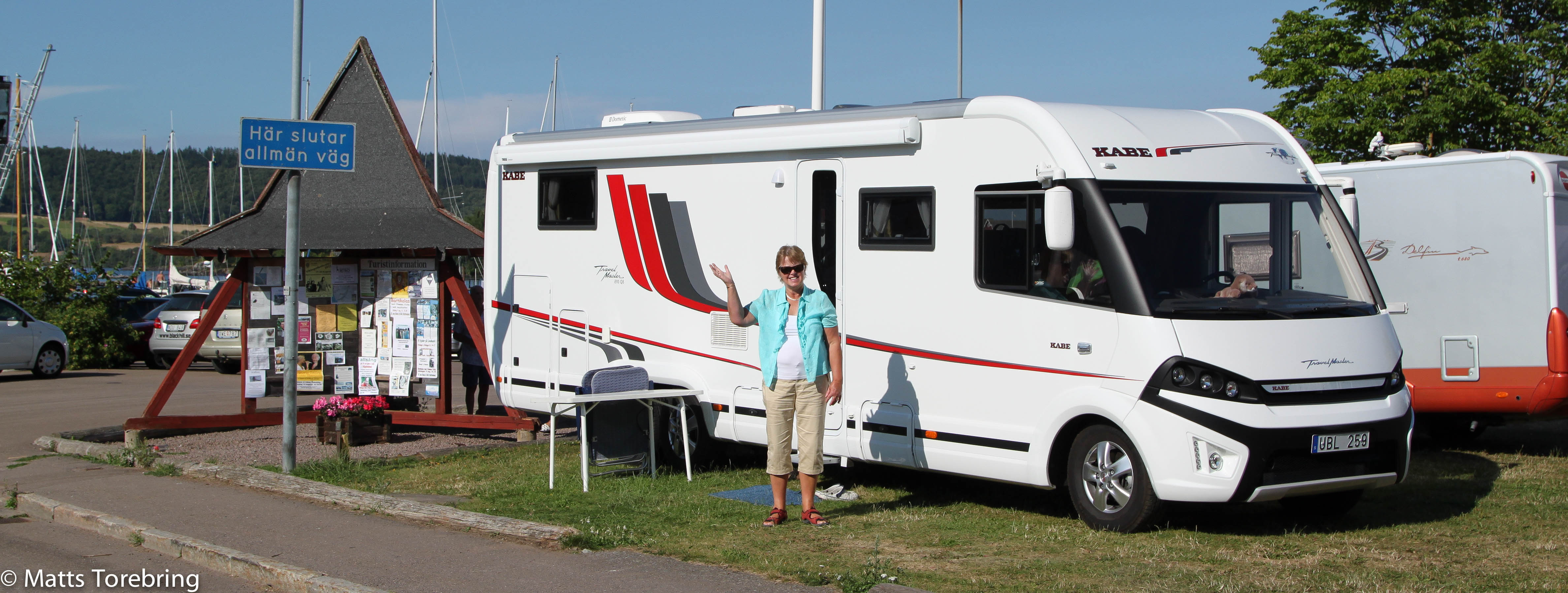 Vi hade en risig bil vid sidan av oss och en Polar 300 (70-80- tal). Där inne bodde en ensam man, bredvid sin stora motorcykel. Fram på förmiddagen drog han sin väg och jag flyttade fram vår Bobil, inom tio röda sekunder. Birgitta som var ute och gick såg att vår Bobil började rulla , men var snabbt hemma och dirigerade. Vilken plats vi fick, återigen första parkett denna sommar.
