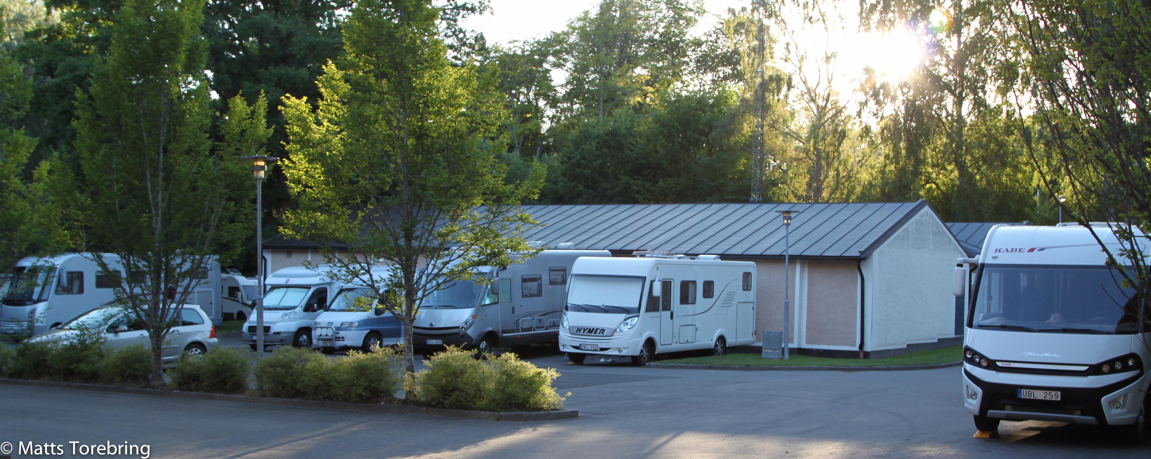 Denna gången såg det fullt ut och vi körde runt två varv. Jag brukar hitta parkeringar där få andra ser en möjlighet att stå. Denna gången kom vår trevliga granne ut och hejdade oss och pekade på en plats där andra stått tidigare. (längst till höger i bild) Det blev riktigt bra och vi hade sol hela fredagskvällen. Vi saknade lite grönt gräs, men vad då, det kostar ju inget.