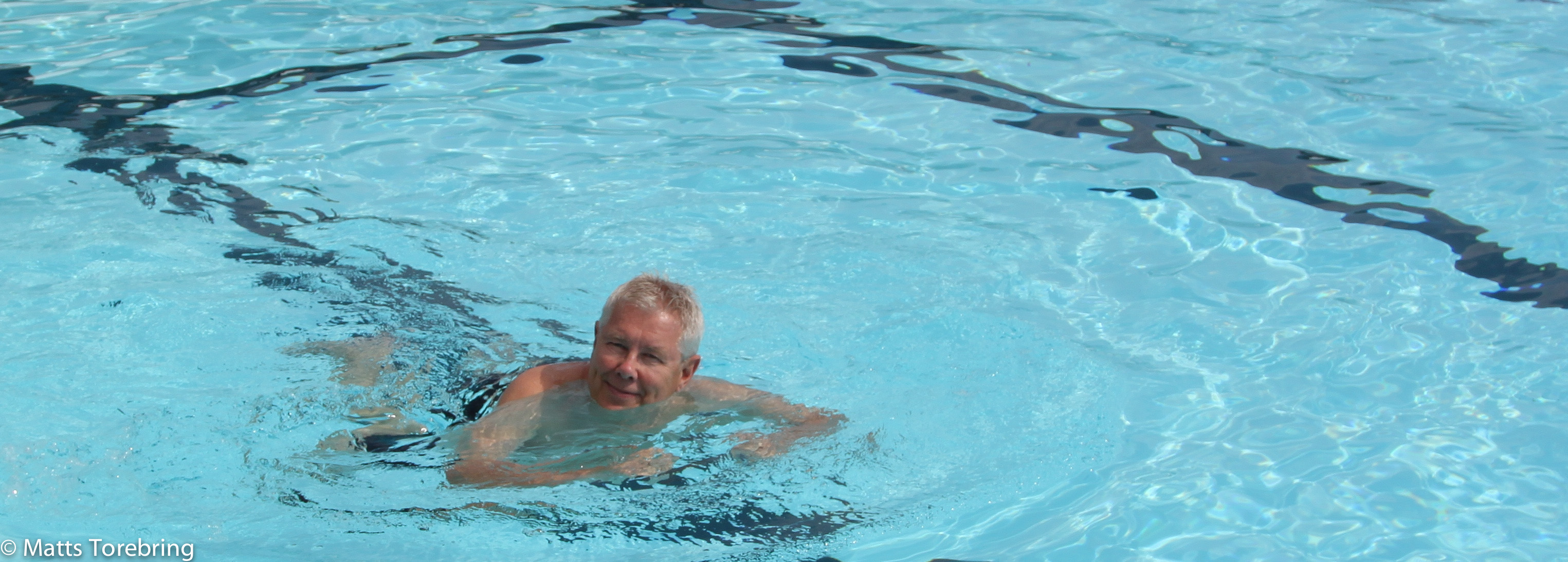 Jag hann bara simma tre hundra meter innan badvakten bad oss gå upp ur vattnet på grund av åska. När vi var halvvägs hem kom åskan och regnet över oss. Bassängen är 50 meter lång och riktigt skön att simma i. Vi återkommer…