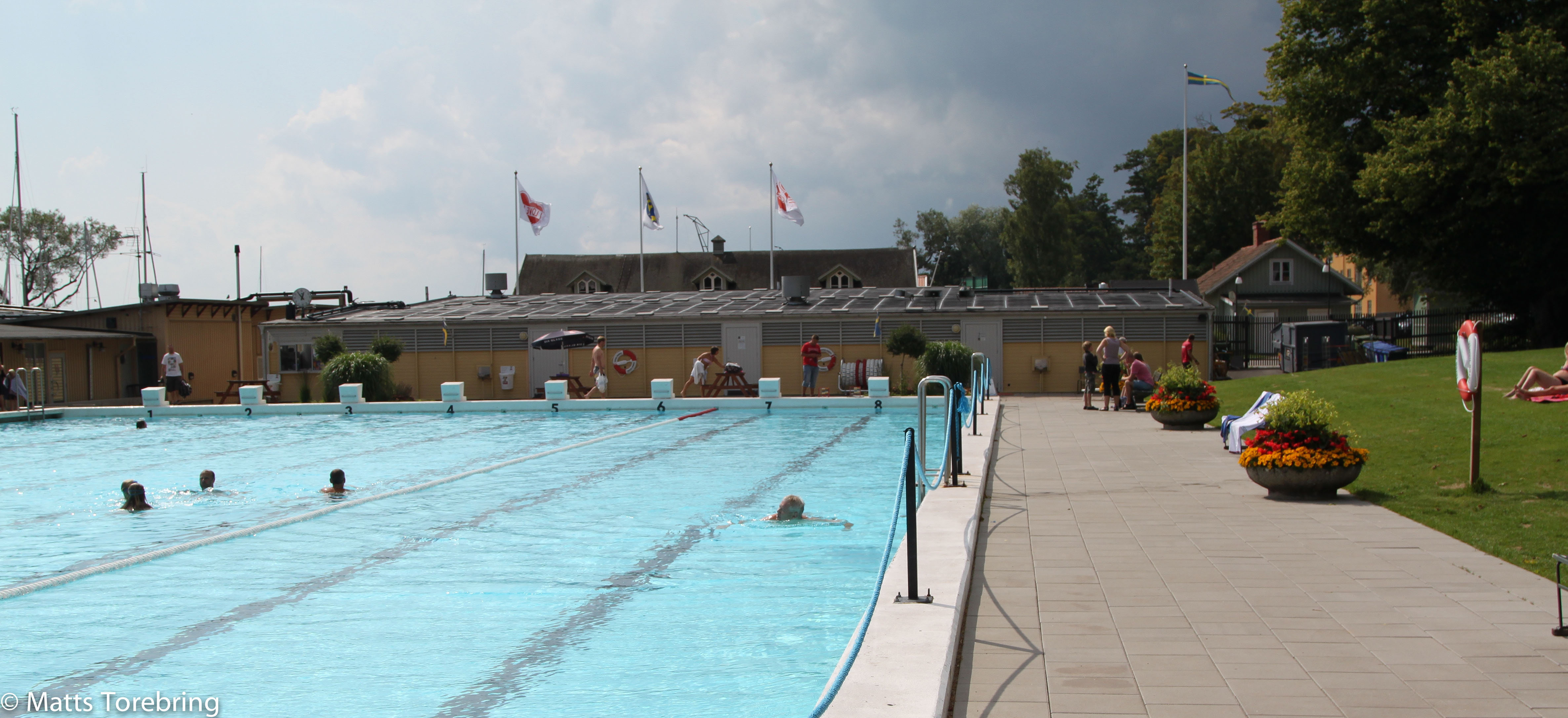Vi samtalade med en dam som fikade med oss vid samma bord. Hon sa just att det diskuterats politiskt att avgiftsbelägga badet. Nej, sa man, vi skall värna om turisterna som kommer hit, det ger mera. Samma kan man nog säga om den avgiftsfria Bobilsparkeringen i centrum. Vi själva gynnar handeln mera när det inte är avgifter överallt. Hjo kommun är ett föredömme. Kram.