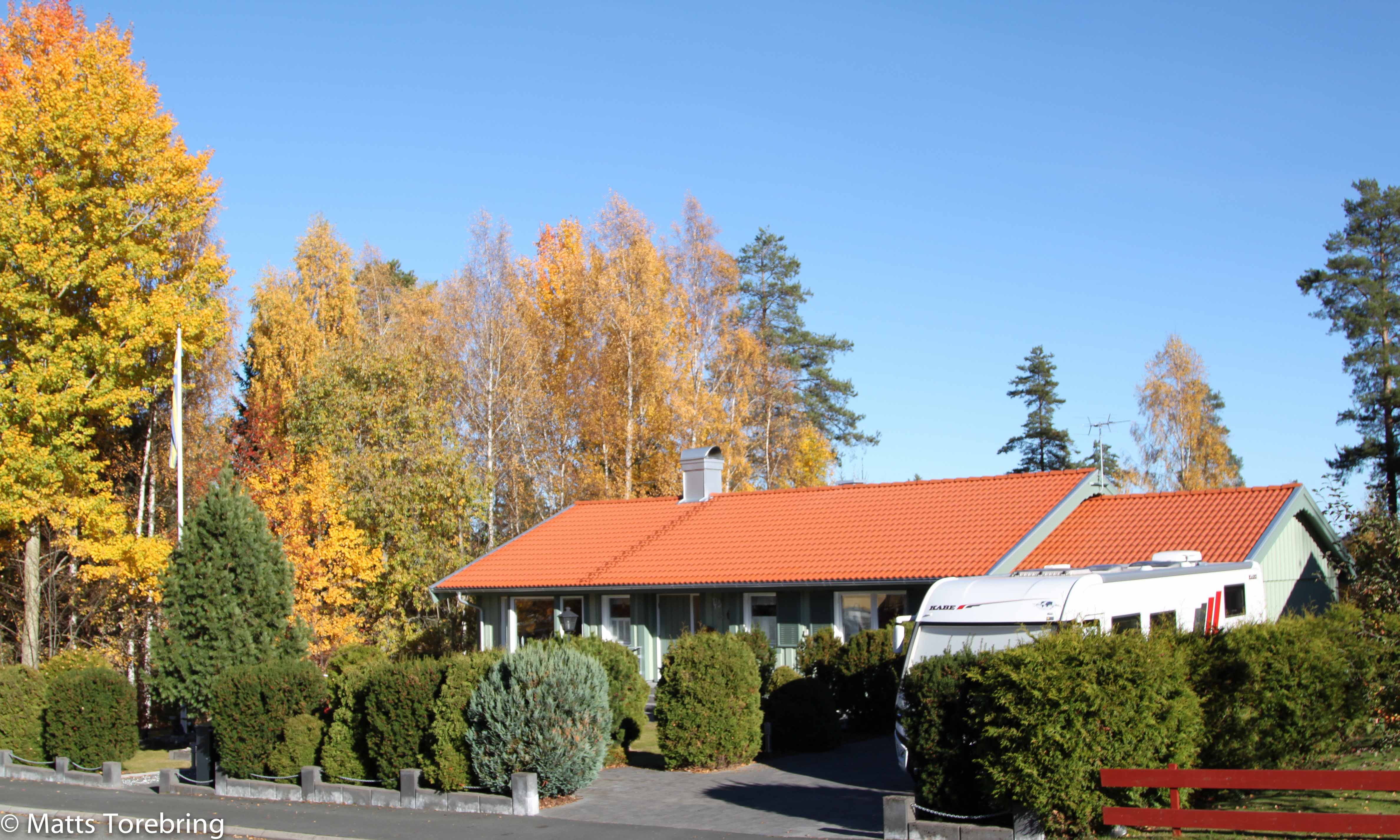 Det var så otroligt vackert ute i dag, att jag var tvungen att gå tomten runt med kameran. Solen sken och det var utesittar väder. Men vi hade bestämt att ha en riktig hemma städar dag.  Birgitta har putsat sista fönstren med sin nya fönsterputsmaskin. Jag har tagit in trädgårdsmöbler och alla ”djur” jag har i trädgården och blomsterurnor är  tömda. Lite löv har jag blåst tillbaka till grannen på ödetomten. Men ”Fino” (robotklipparen) fick vara kvar ute, gräset  växer fortfarande. I veckan lade min plåslagare sista handen vid skorstenen och min snickare monterade vindslucka i garaget, upp till vinden och isolerade klart. Genast blev det ett lass till Kretsloppsgården igen. På vinden till garaget fick jag ett jättebra och lätttillgängligt förråd till skidor och campingmöbler med mera.