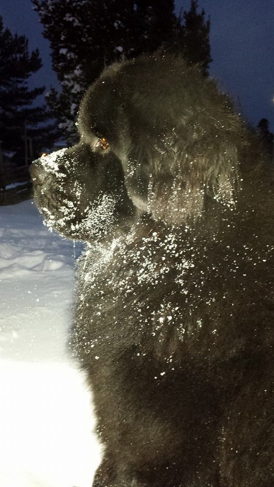 Han ser ut att trivas i snön 🙂 New Foundlandshunden är en fin och trevlig ras… har haft ett par i bekantskapskretsen 🙂