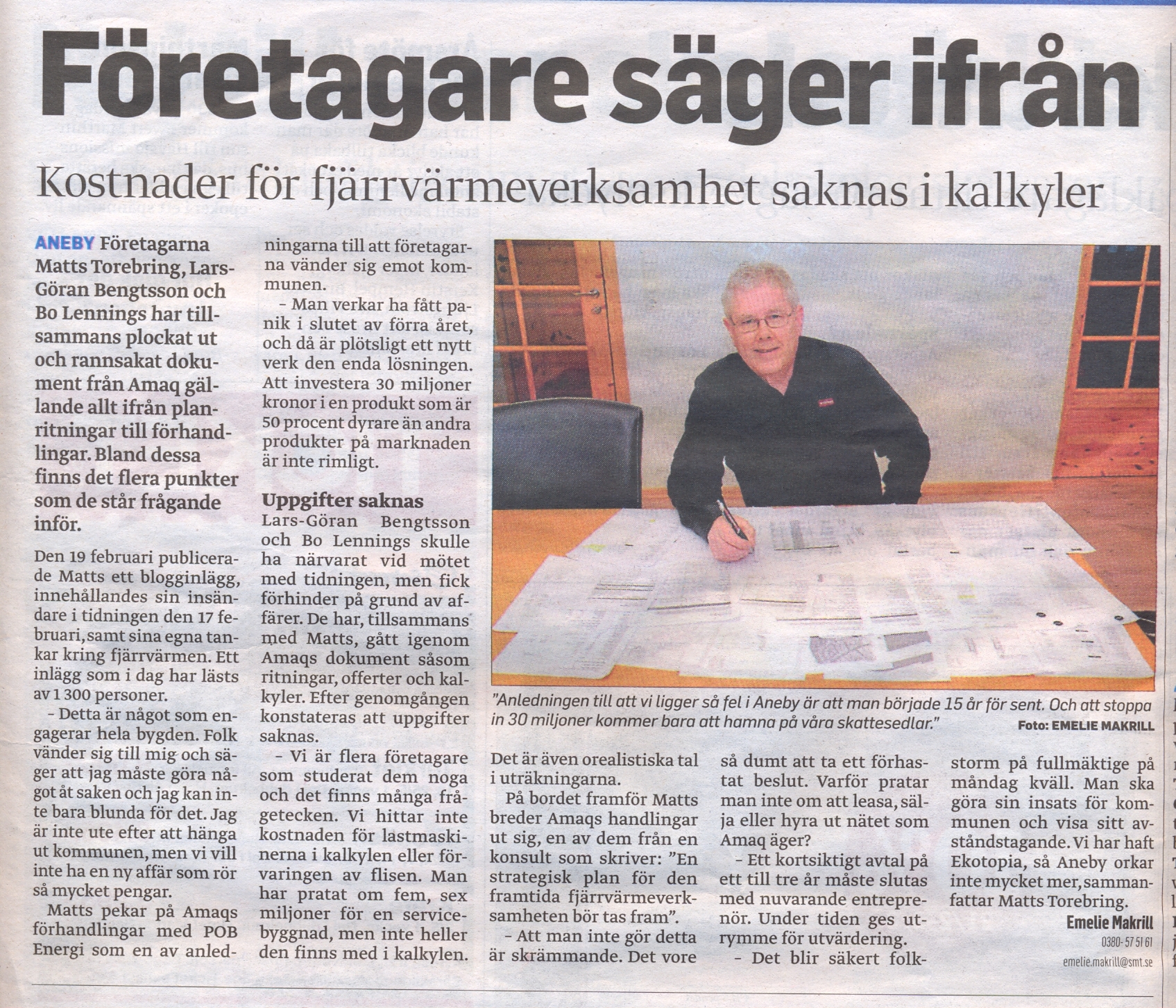 Ps. Smålands Tidningen har drunknat, i alla insändare om fjärrvärmen i Aneby. Ledsamt nog har bara tre inlägg kommit in.