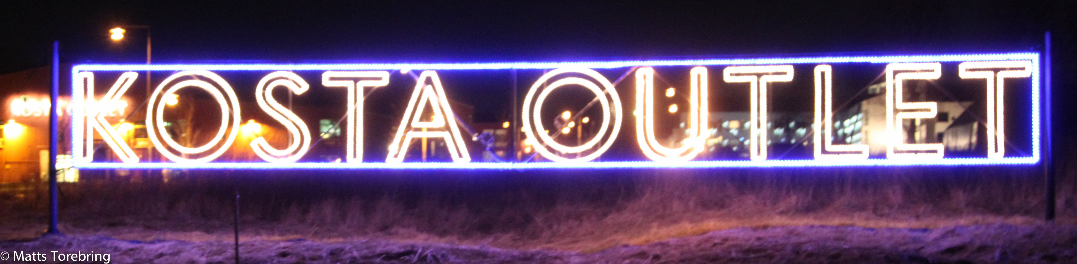 Det stora varuhuset Kosta Outlet, längst till vänster i bild.