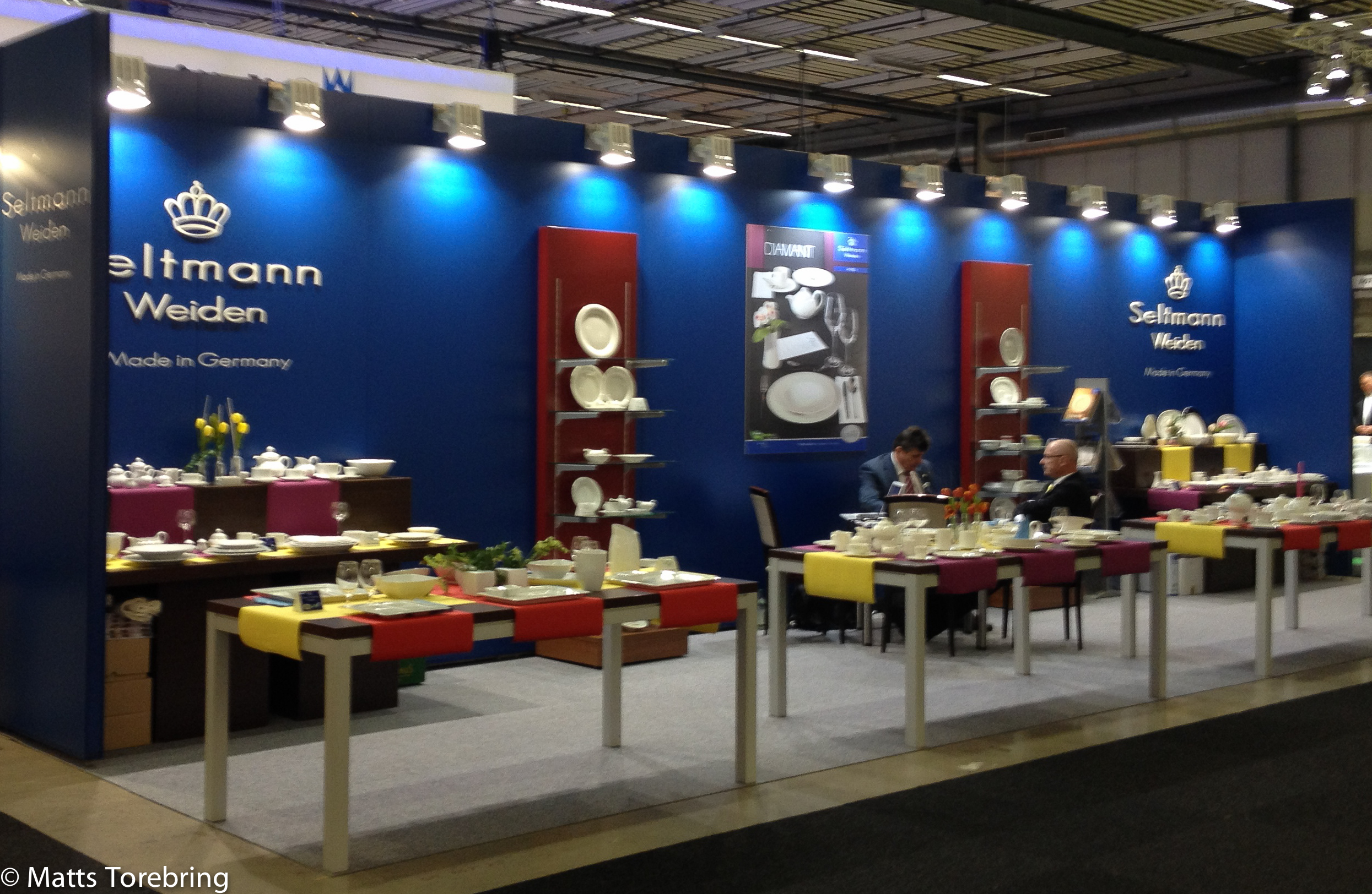 Många är de gånger vi besökt Gastro Nord, Restaurangmässan Älvsjö, under årens lopp. Idag åkte Niklas och jag och en av våra trotjänare & säljare till mässan. När vi var restauranggrossister under 80- 90 talet var allt, mer eller mindre intressant. I  dag hade vi riktat in oss på att träffa flera tyska tillverkare av kvalitétsporslin. Här är en av dem, Seltmann, ett för mig nytt sortiment.