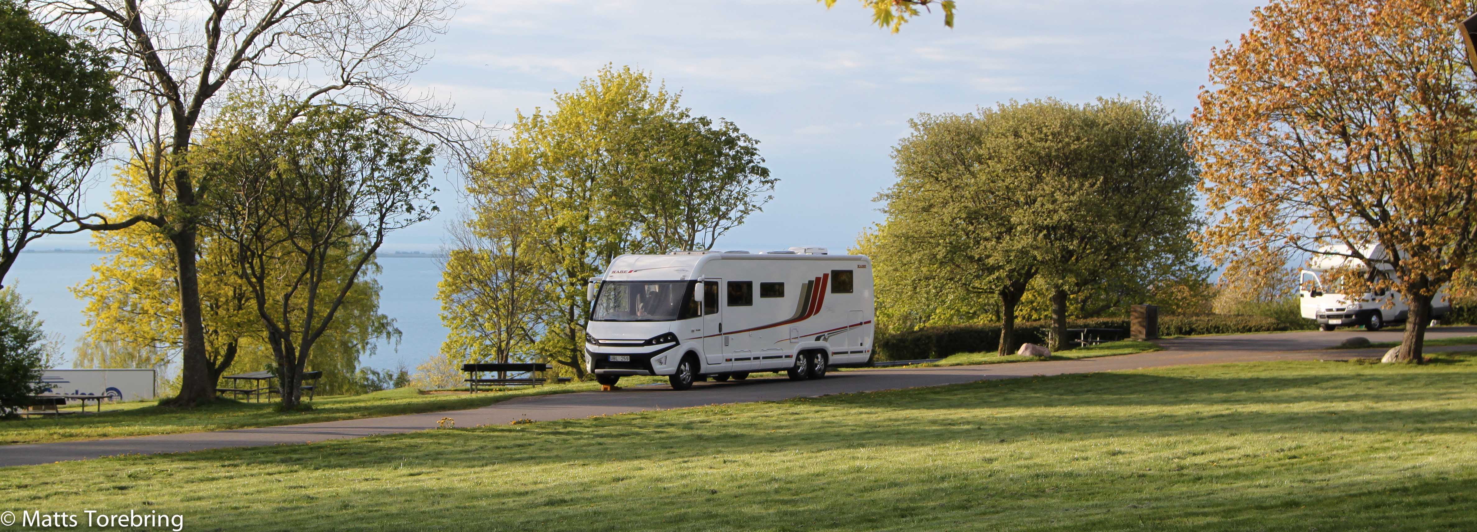I stort sett alla bord har denna magiska utsikt över Vättern. Mätta och glada vände vi åter till rastplatsen och vår Kabe. Nu hade vi planerat att köra ned till Gränna Hamn, för att vara laglydiga och stå på rastplatsen bara 24 timmar. Men… så var det den goda maten och den goda drycken, som vi inte kunde avstå efter en lång promenad. Alltså tycker vi det är mindre lagbrott, att stå kvar en natt till, än att köra bil med en Eriksberg i kroppen.