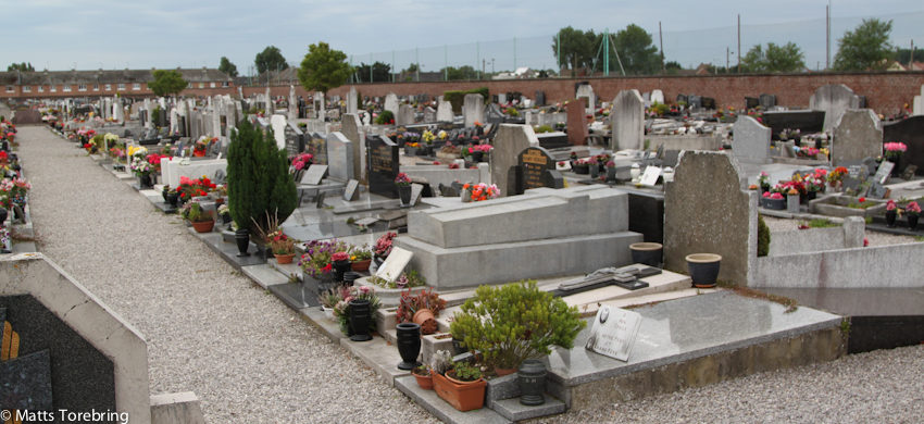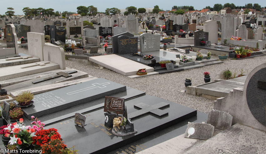 Jag såg cimetière (kyrkogård) på GPS´en. Detta franska ord lärde jag mig i Omaha Beach, när vi var där för några år sedan. Denna kyrkogård var nog närmare en km lång.