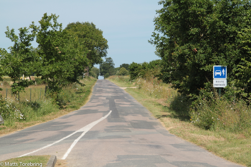 En smal väg, ofta bara ett par tre meter bred, viker av mot norr utanför vår camping. Utan att kolla på Google Maps innan, trodde vi att detta var en cykelväg till havet. Visst hade vi kommit till havet om vi hade fortsatt.