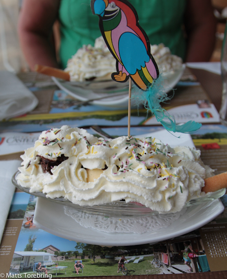 Vi gick till den trevliga restaurangen på campingen och åt riktig svensk mat till avslutning, på vår tre och en halv vecka on Tour in France.