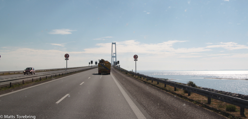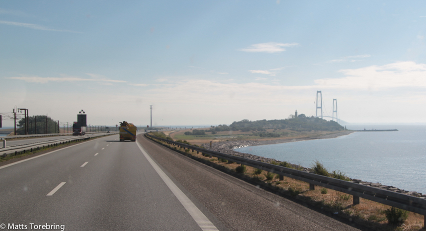När Stora Bältbron slutar från Sverige sett, sväng till höger
