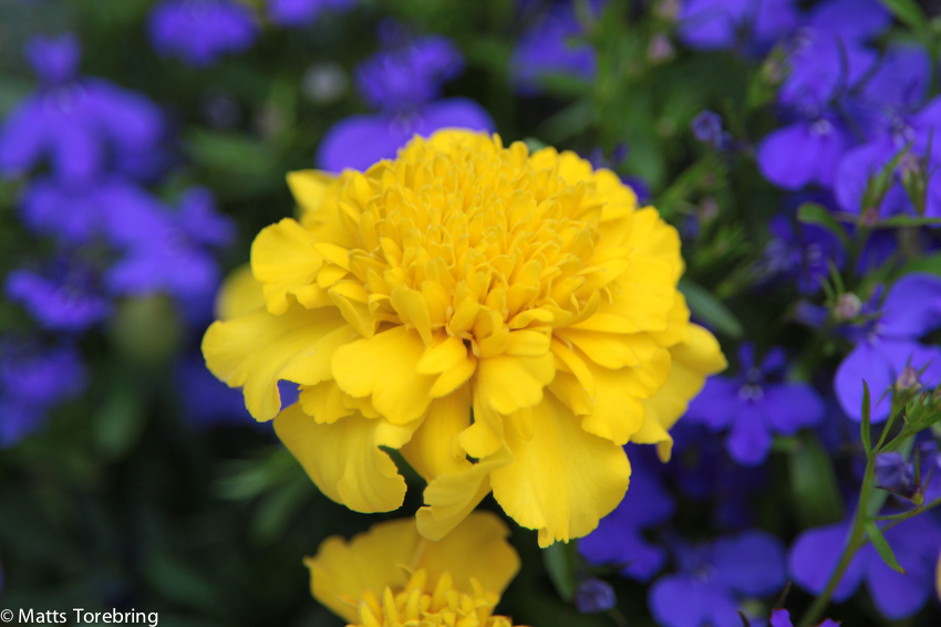 Jag kan inte göra några konstnärligt utformade planteringar, utan måste tänka, vilka blommor klarar sommaren bäst, om det blir torka. Därför planterar jag, de enklaste blommorna av alla, Tagetes och Lobelia.