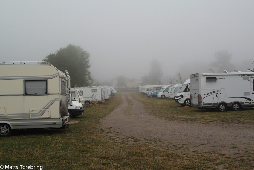 Utsikt från båten över ställplatsen.