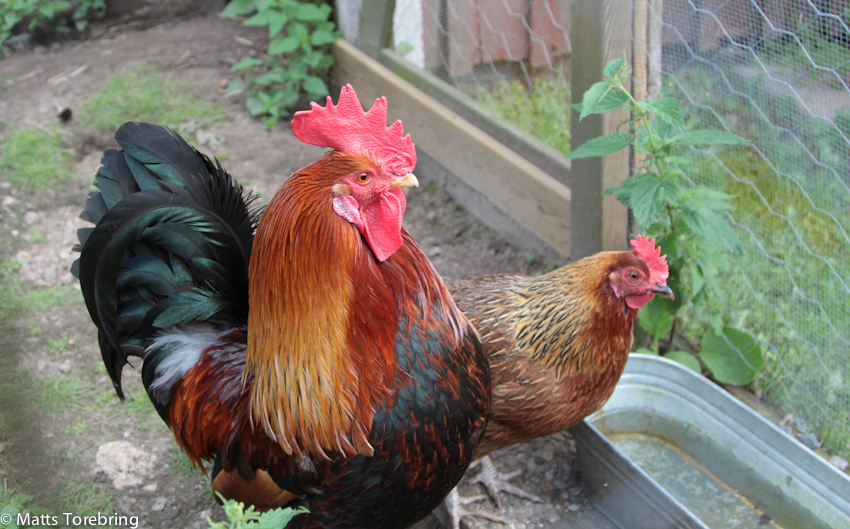 En tupp galer och talar om för husse & matte att det kommer gäster