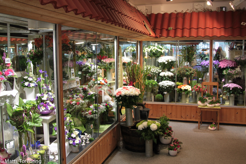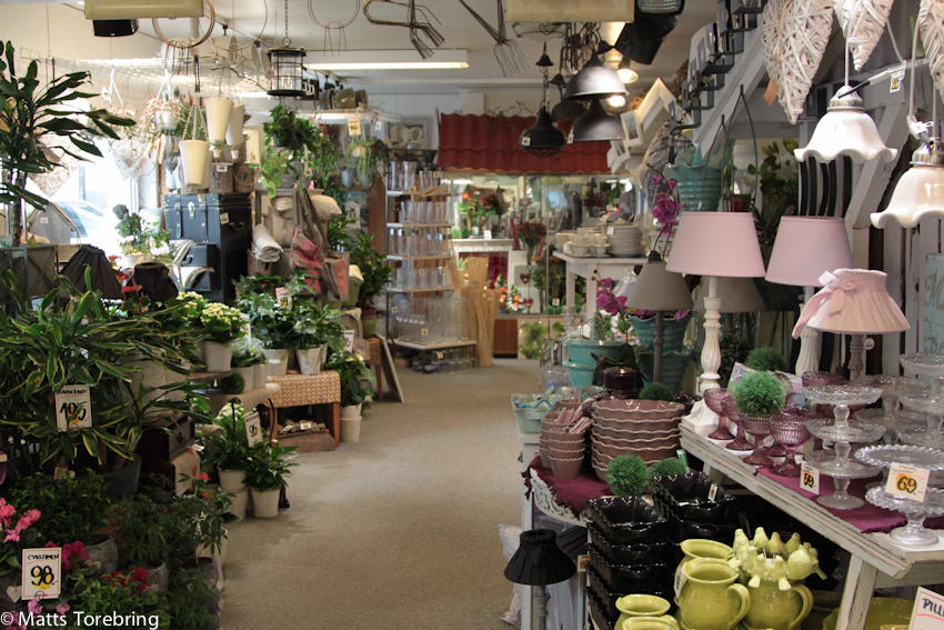 Denna butik måste vara unik i Sverige. Så enormt mycket presentartiklar, levande blommor, sidenblommor och all denna sköna exponering, som de måste vara ensamma om.