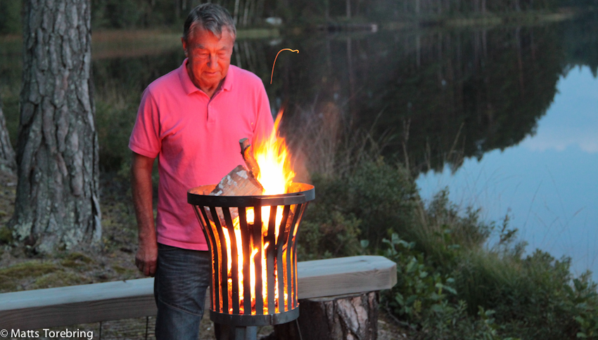 Jan tände stolt sin fina eldkorg, tillverkad i Småland och ingen Kinaproduktion. Titta på tjockleken på järnet, titta hur tätt järnen sitter, sa Jan och tände på i brasan. Av goda vänner hade Jan kunnat köpa virke, till en extremt stark sittbänk, tillverkad av tjocka och breda plankor.