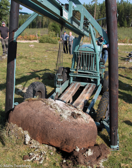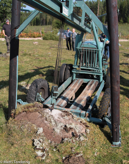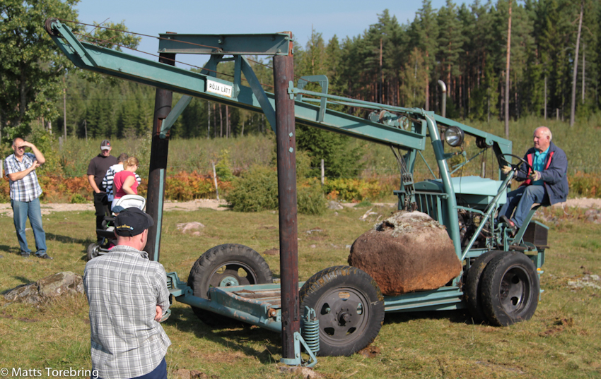 Jag skrev om en sådan här ”Stenuppdragare” för några veckor sedan när vi var i Ydre. Denna maskin, årsmodell 1948, är nummer 1, av drygt 170 styck tillverkade av Erik Brorsson, senare ”Brorssons i Mariannenund”. Under året har den restaurerats och idag var det premiär, för allmänheten att få se den i drift.