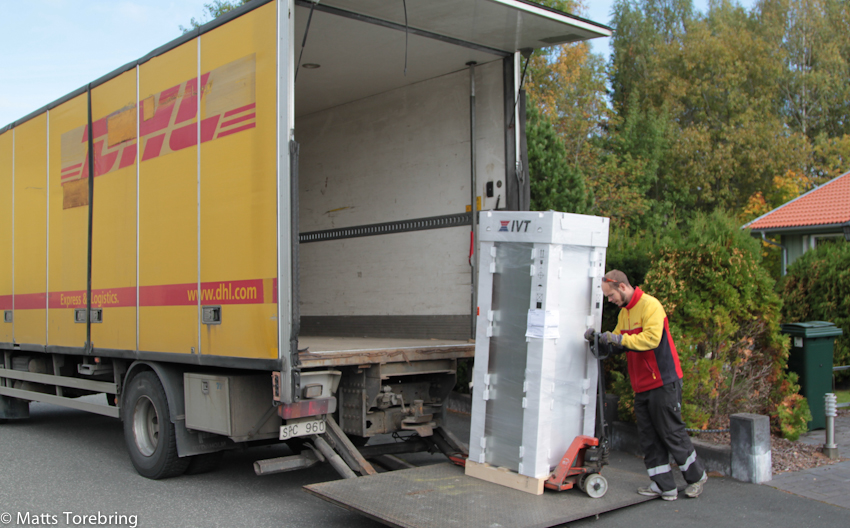 Din leverans av värmepump från IVT, beräknas komma mellan klockan 10- 12 onsdag 17 september, stod det i ett sms som kom. Naturligtvis ringde jag DHL och påtalade, att jag kan inte gå hemma och vänta i två timmar. Be chauffören ringa tre minuter innan lossning, så möter jag upp. Vad tror ni jag fick för svar ? (Ingen skugga över chauffören denna gången, han var jättetrevlig och sökte upp mig på jobbet).