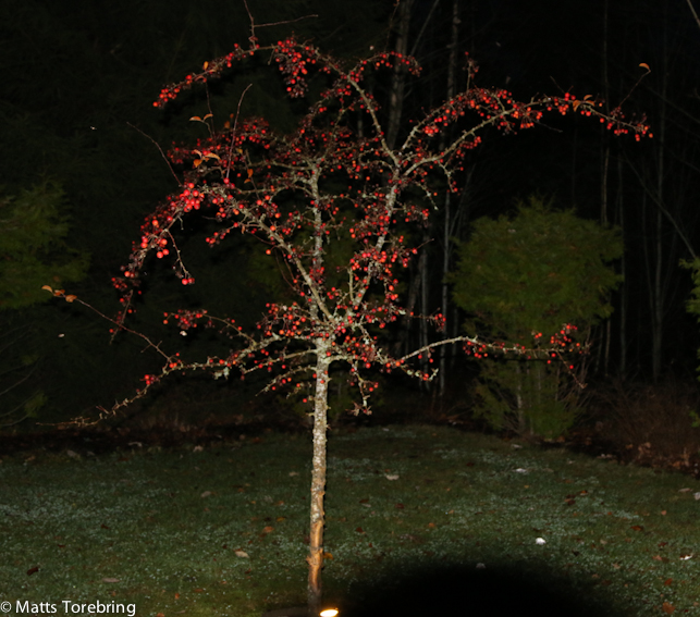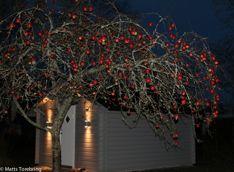 Testfoto hemma i Niklas trädgård, ett kvarglömt äppelträd.