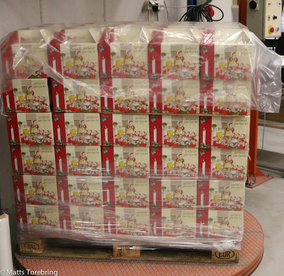 Här kommer vi att packa 10 000- tals Tomtelådor med massor av delikatesser och godis. Än så länge har vi packat väldigt lite. Det mesta är färskvaror och packas i sista minuten innan leverans. Detta för att alla skall få så långa bäst före datum som möjligt.