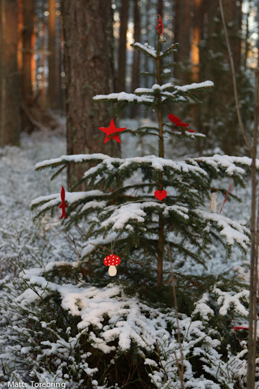 Helt överraskad blev jag att hitta en klädd gran, ett stycke in i skogen. Så söt och vacker och tur att kameran var med.