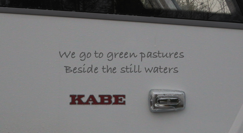 Allt grundar sig på tankarna kring ”Husbilspsalmen” Ps. 23. Jag har i mitt liv upplevt så svåra stunder, att sängen varit en plåga på natten, men jag har aldrig känt mig övergiven eller utlämnad. Jag vet att The Lord is my Shepherd. Nu lever vi lyxliv i vår fina Kabe. Vi får vila på gröna ängar och finna ro vid stilla vatten.