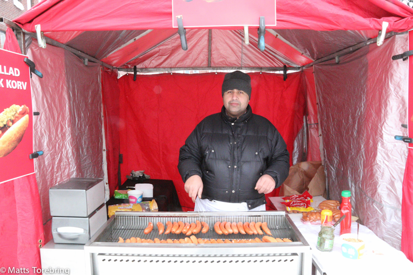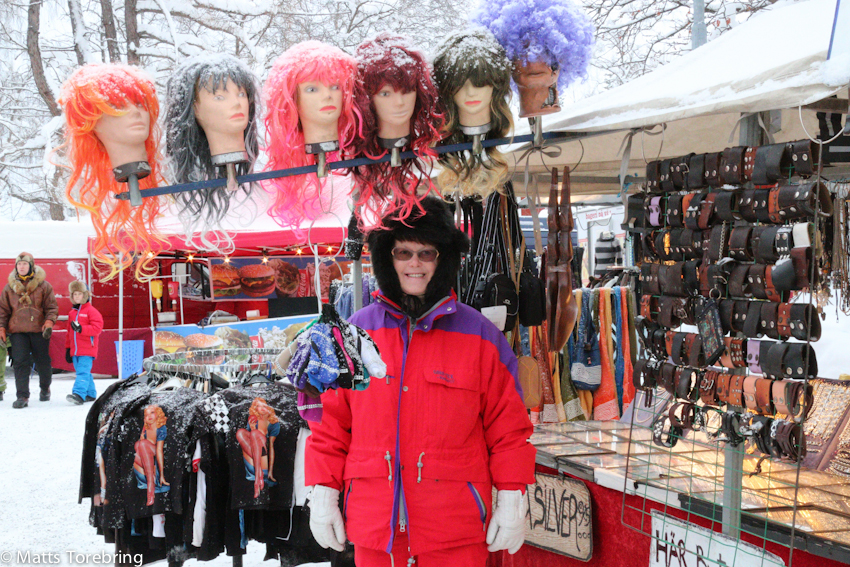 Ett stilla snöfall satte glitter i håret, så även på alla stånd med lakritsremmar och dylikt.
