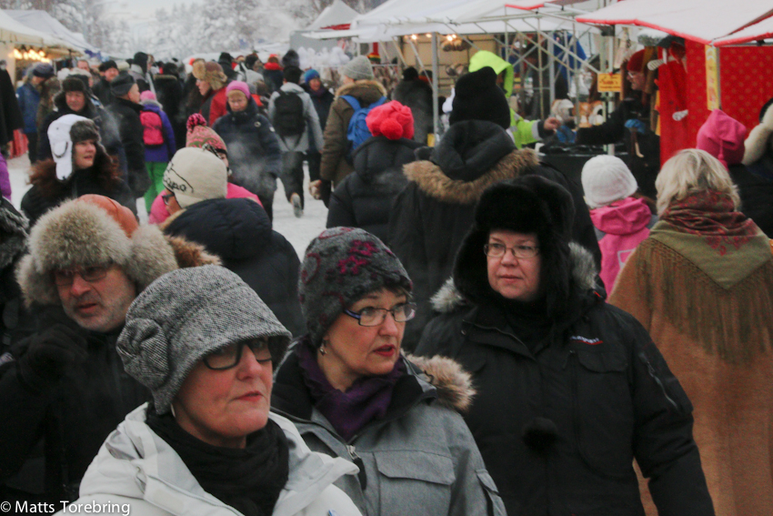 Det har varit en upplevelse att möta människorna här uppe. Inte minst på campingen vi bor på, Artic Camp Jokkmokk. (Campingen är under namnbyte) Så vänligt och service inriktat mottagande, får man leta efter. Både vid ankomst och under boendet, möter vi detta. Idag var det 1,5 timma väntan på taxi in till marknaden. (Birgitta tyckte det var för långt att gå i kylan) Då kommer campingvärden och säger, ”Jag kör in er till marknaden”. Naturligtvis ville jag betala, men fick med nöd stoppa på honom lite pengar för resan.