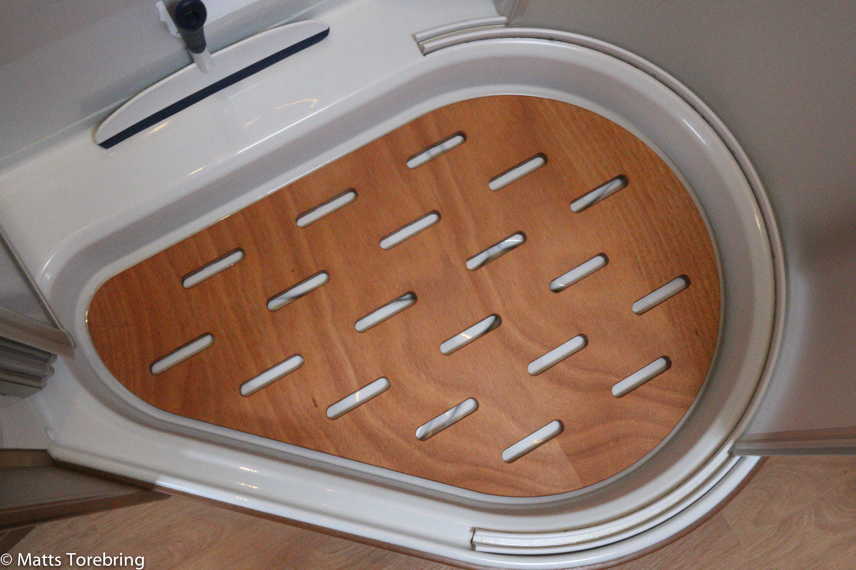 Trägolv i duschen följde med i våran husbil, väldigt bra att stå på.