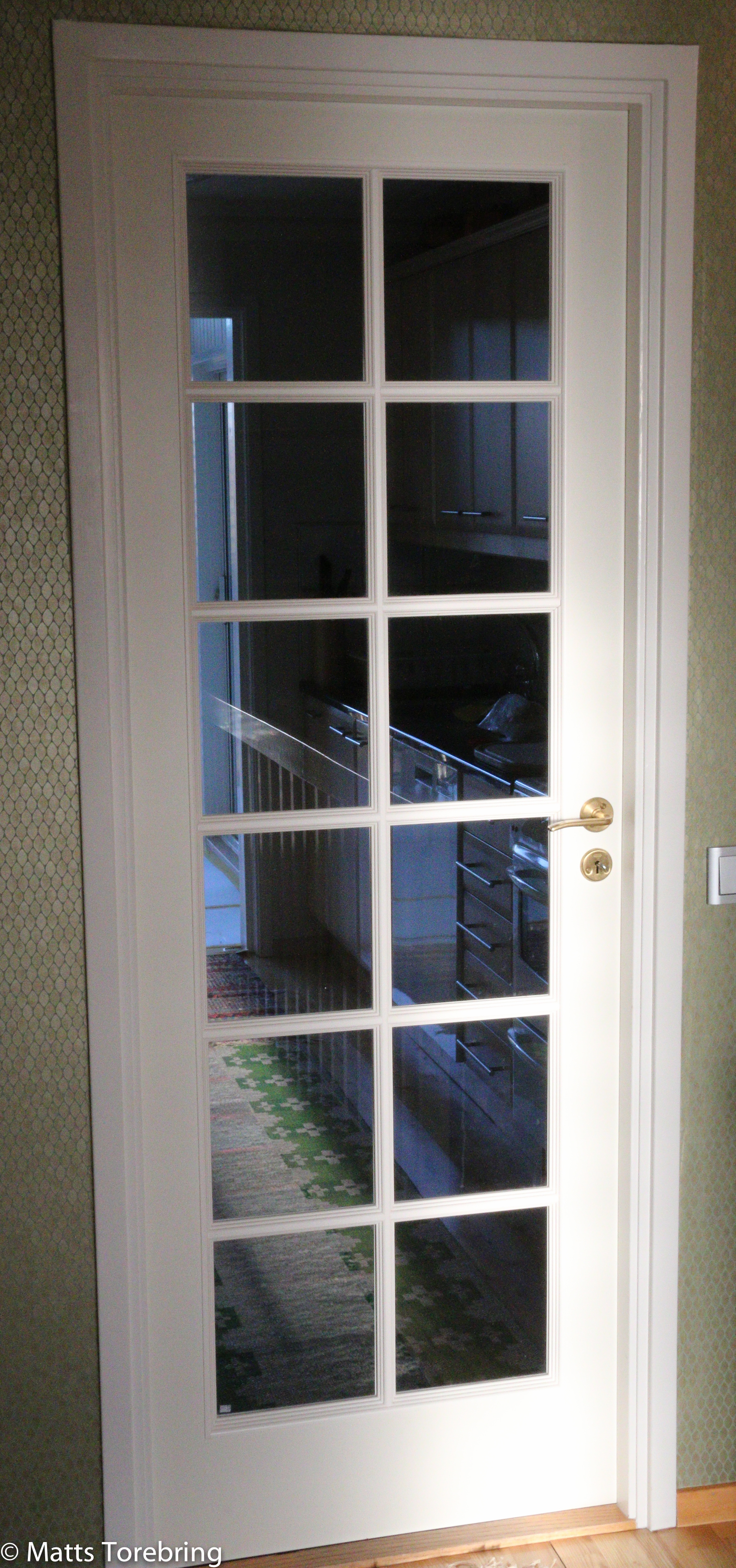 Samtliga fem dörrar finns på Blocket om en stund. Dessutom bytte vi ut ett skjutglasparti i vår vinterträdgård. Det sålde jag efter några timmar på Blocket.