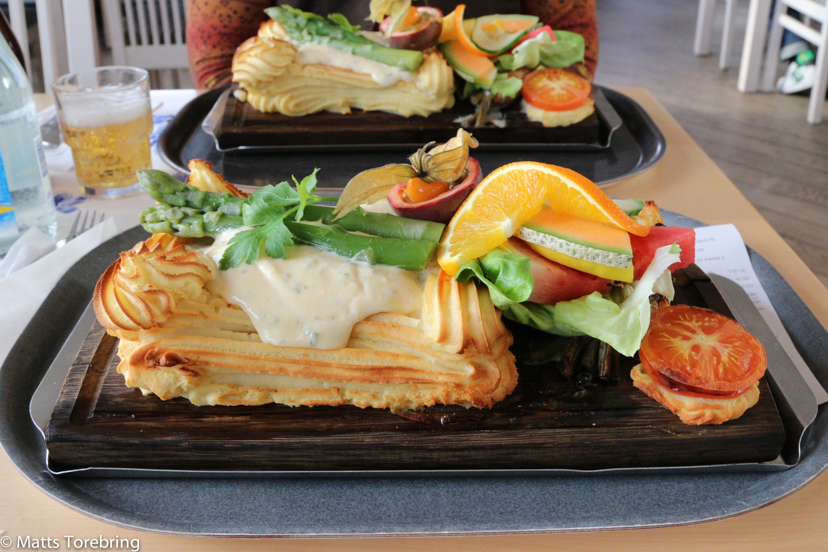 Denna gången har du fått fel information Yvonné, det är inte en fin golfbana, det är två 18- håls banor. Jag gick en promenadväg genom golfbanan utmed sjön, från husbilen där vi står. Fyra km tur och retur promenad i rask takt, jättefin bana i underbar natur. Åt handra hållet slutar banorna vid campingen vi bodde på. Maten i Herrgården är utsökt.