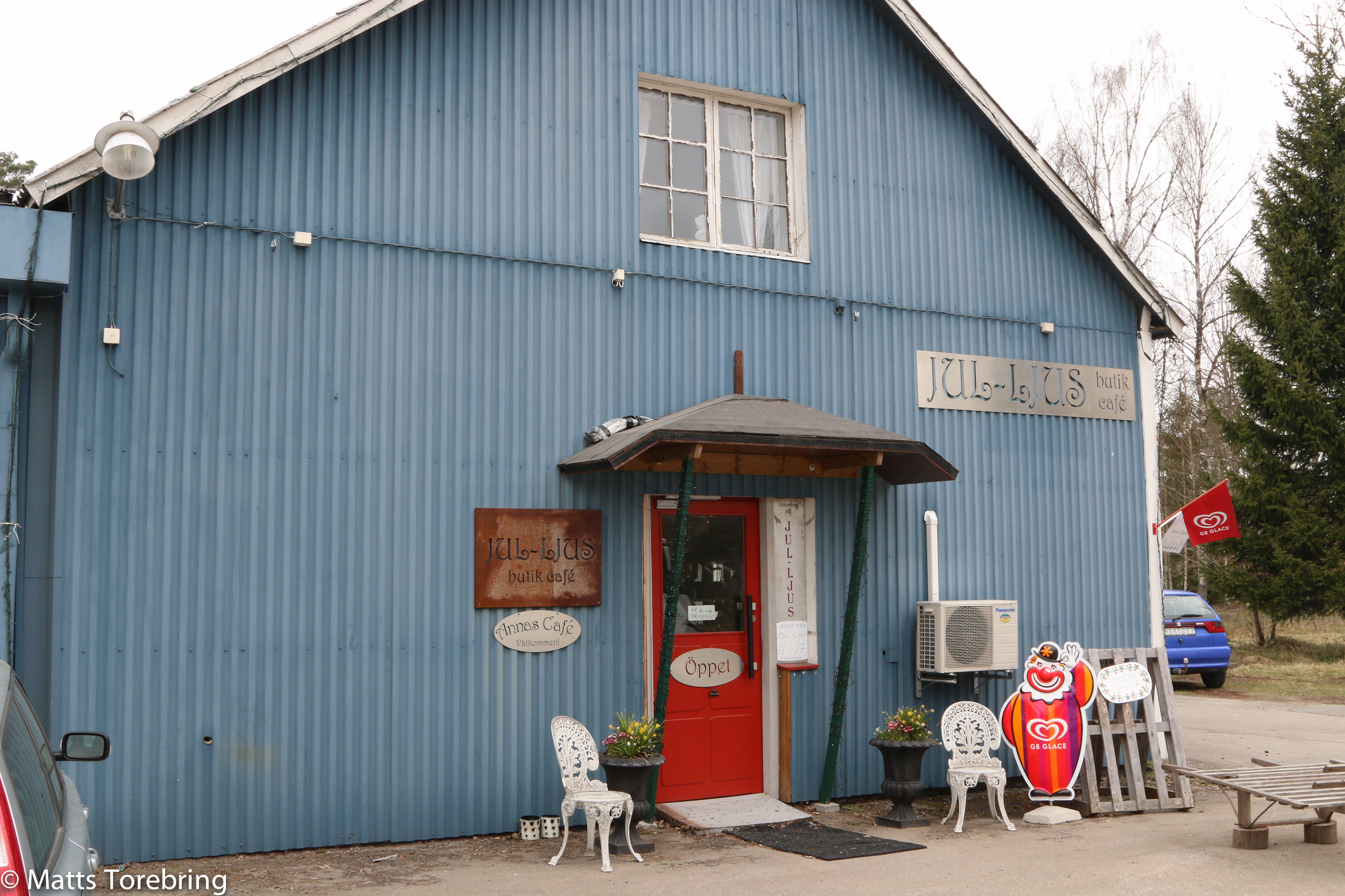 Lite längre ned i ett villaområde i Hok, fanns på 70- talet en fabrik som tillverkade julgransljus. Jag har ett minne från mitt kundbesök där hösten 1976 när jag började sälja. Naturligtvis var jag tvungen att åka dit och kontrollera om huset och fabriken fanns kvar. Nuvarande ägarna har tagit över historien i huset och skapat en urmysig butik och café där nu. När vi började prata, kände de väl till mig och Torebrings. Vilken härlig pratstund vi fick, om gemensamma vänner och tiden som flytt.