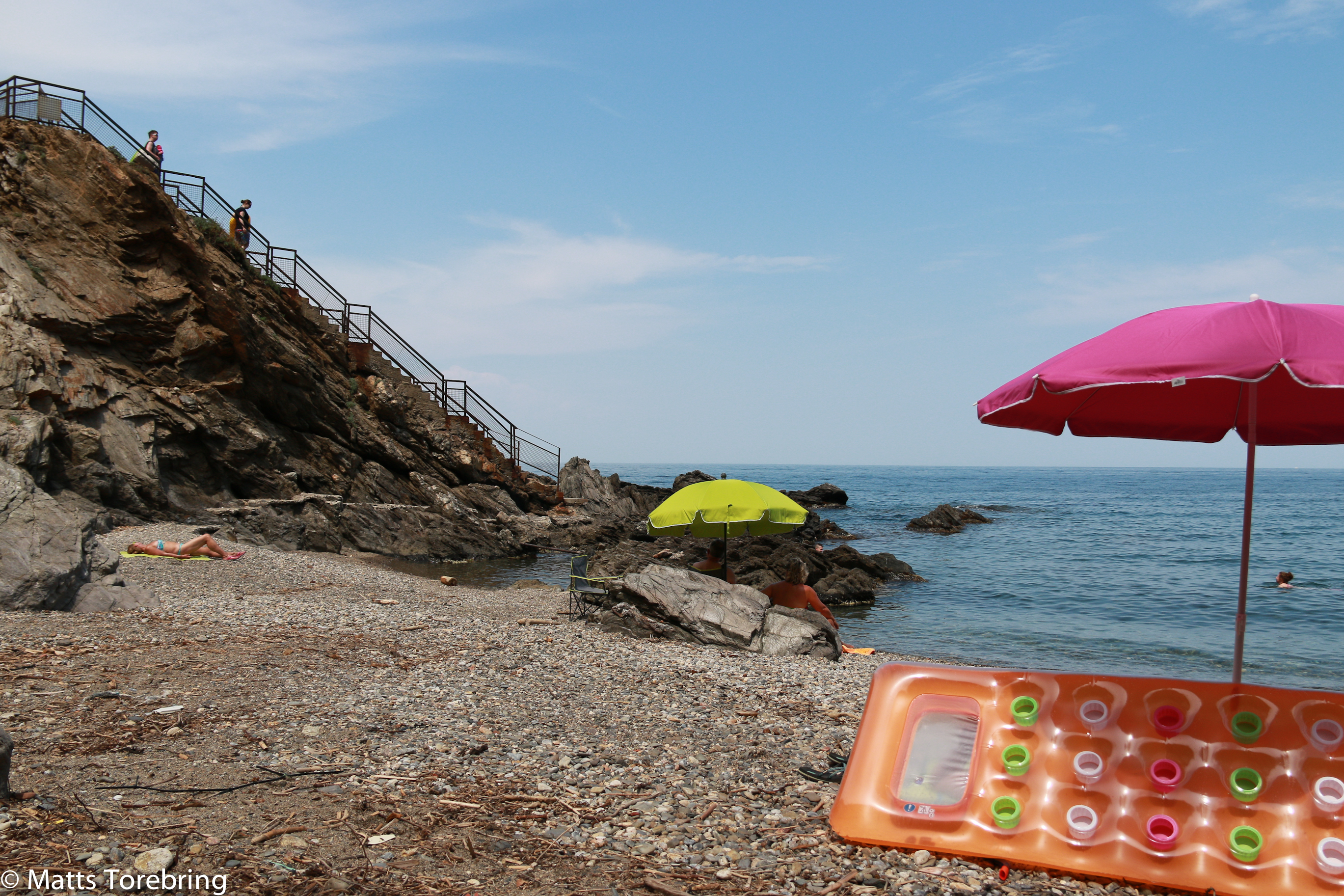 Jag älskar en badstrand som denna. På campingarna i Spanien, har vi varit på stranden med tusentals andra, så är det inte här, utan småmysigt bland klipporna.