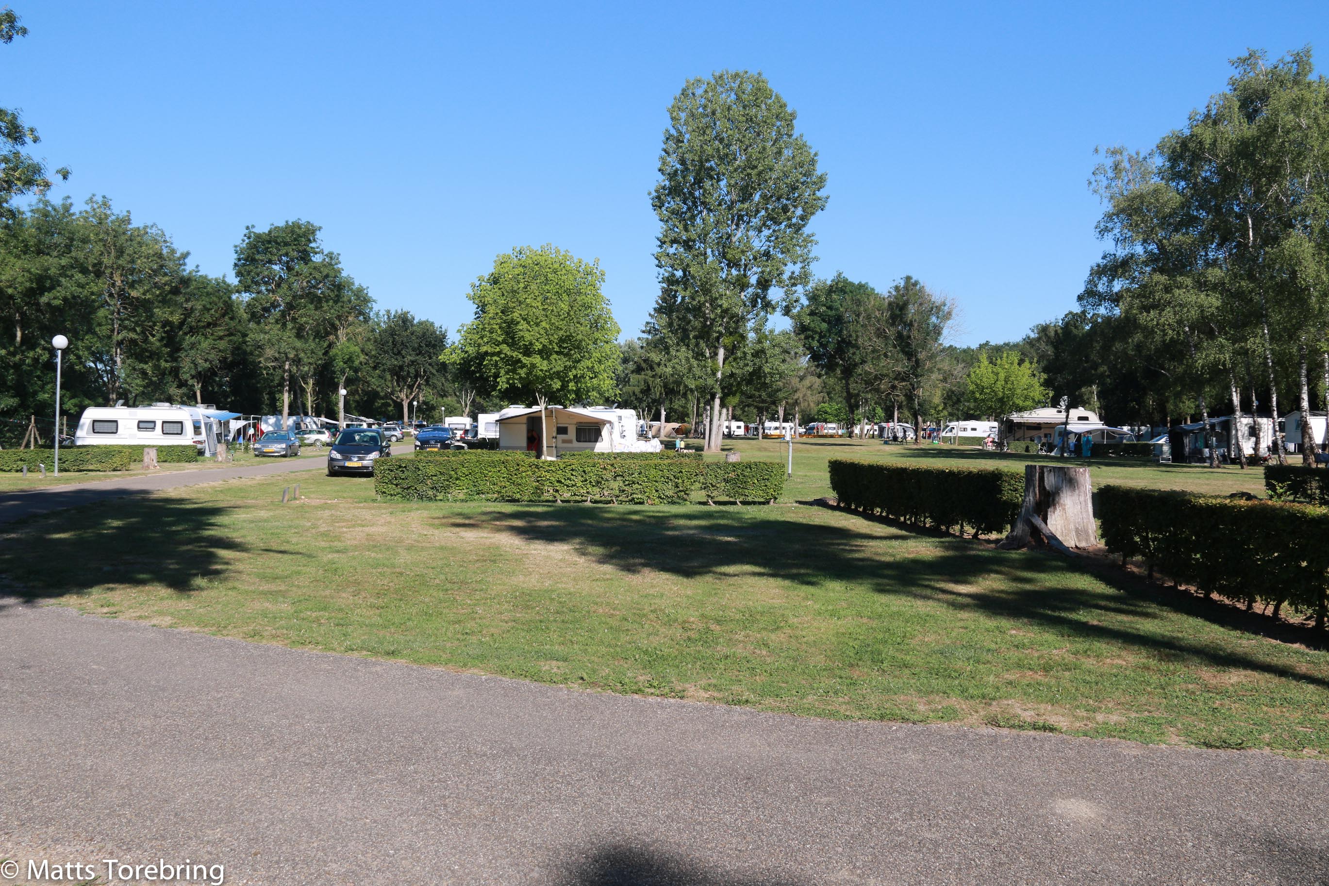 Aldrig någonsin har vi gästat en campingplats, där i stort sett alla har en jättetomt att parkera på. Här är dessutom en lekyta i mitten. Jättebra ordnat!