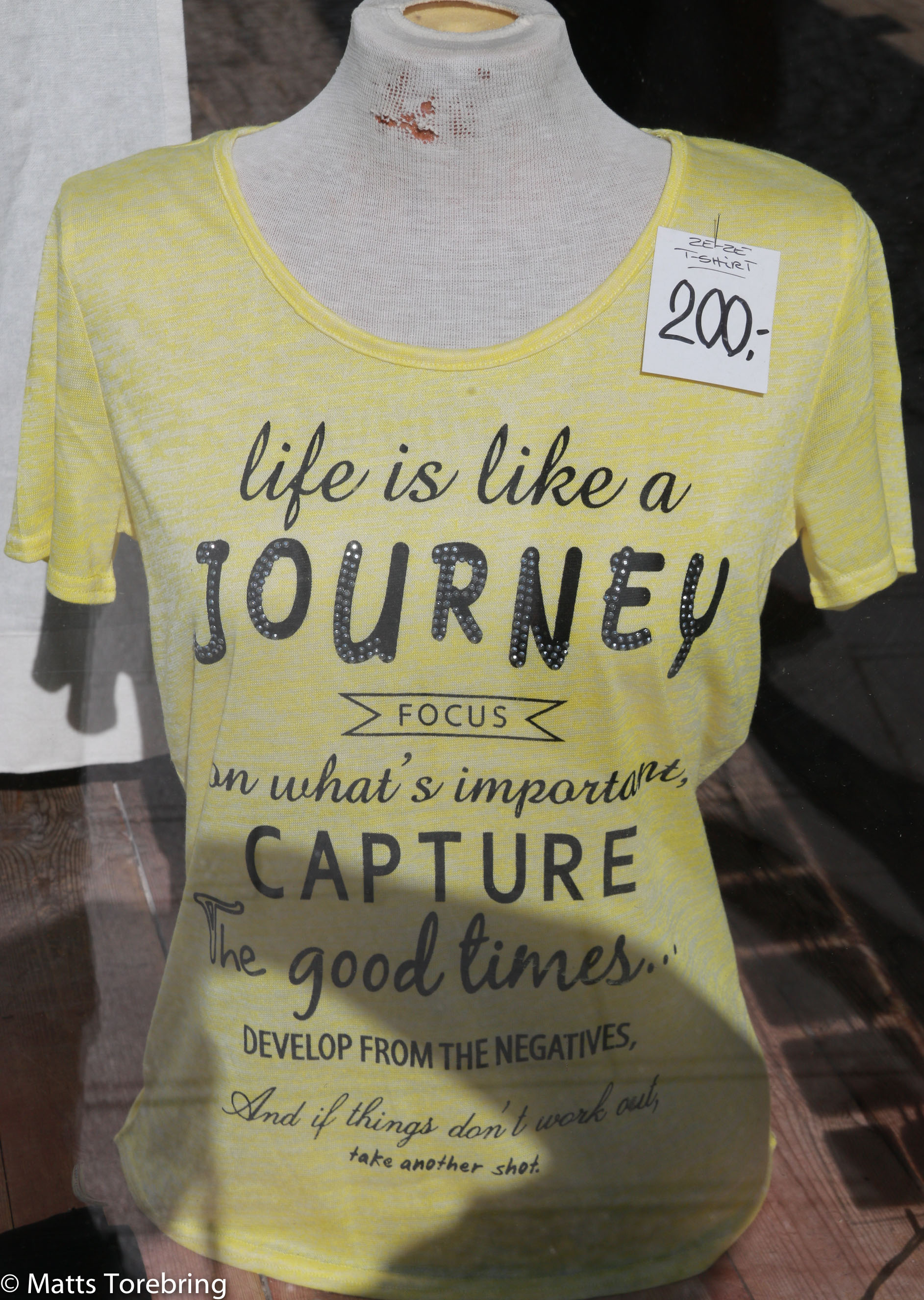 En T-skirt i ett skyltfönster på Møn