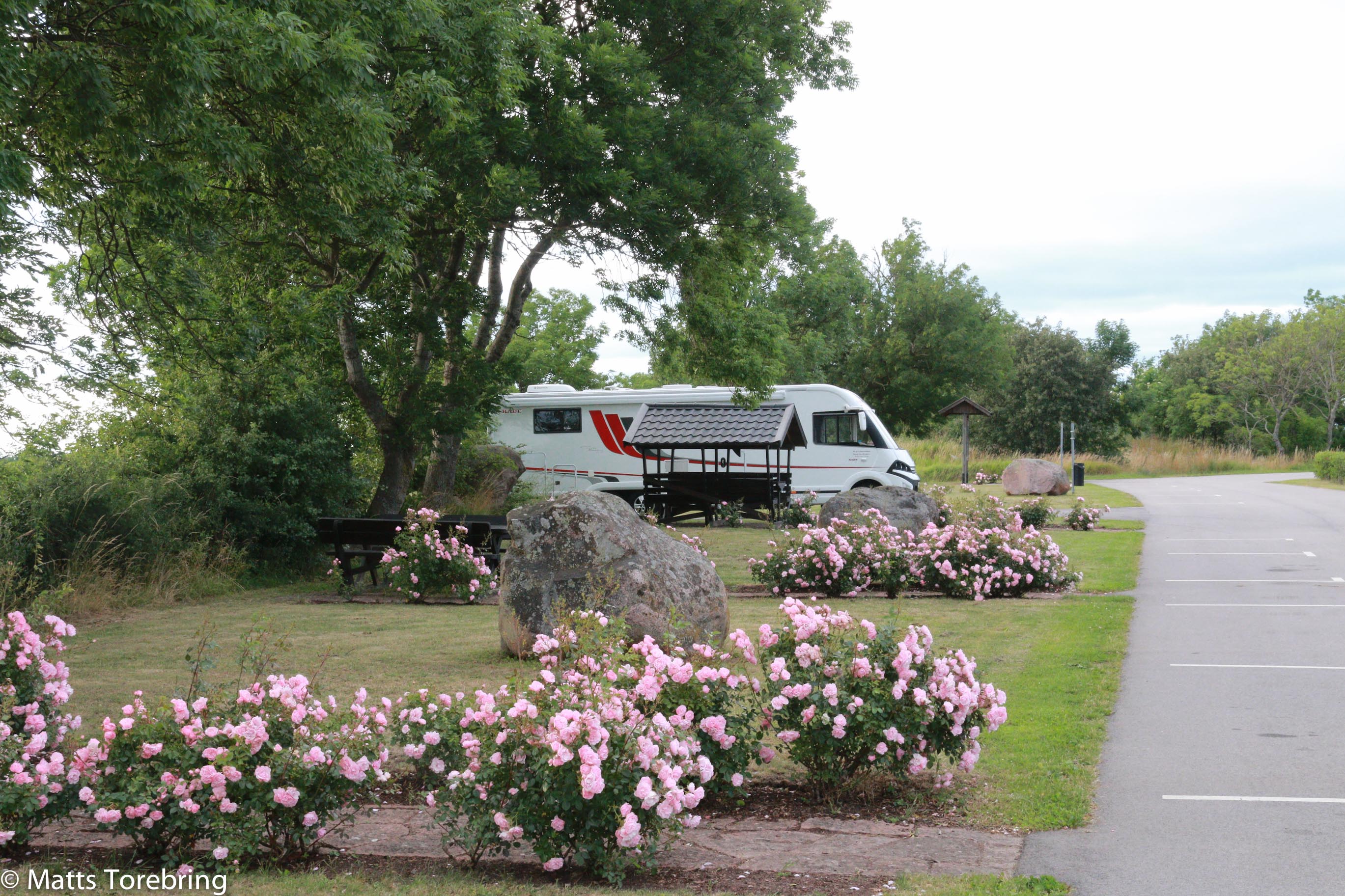 Kanske borde man inte skriva om samma sak flera gånger. Jag vet inte heller hur många kort jag tagit här, före eller efter övernattning. Här på Glömminge rastplats, finns bara två fickor att backa in i, men jättemånga parkeringsrutor för personbilar. Detta är vår favoritrastplats. Denna parkeringsfickan, har alltid varit ledig för oss när vi kommer. Nu har vi nattparkerat här. Vi är på väg till Lammet & Grisen på Löttorp.