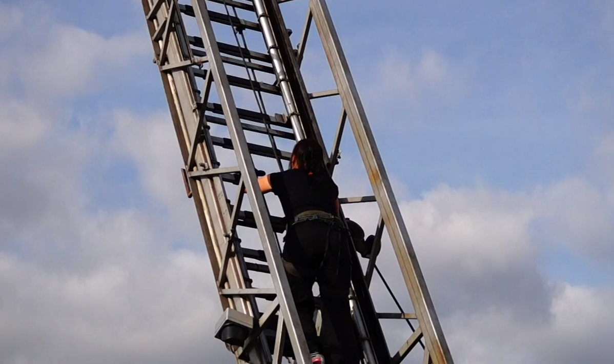 Jättebamse hög stegbil att klättra upp i. Jag skulle få svindel så högt var det.
